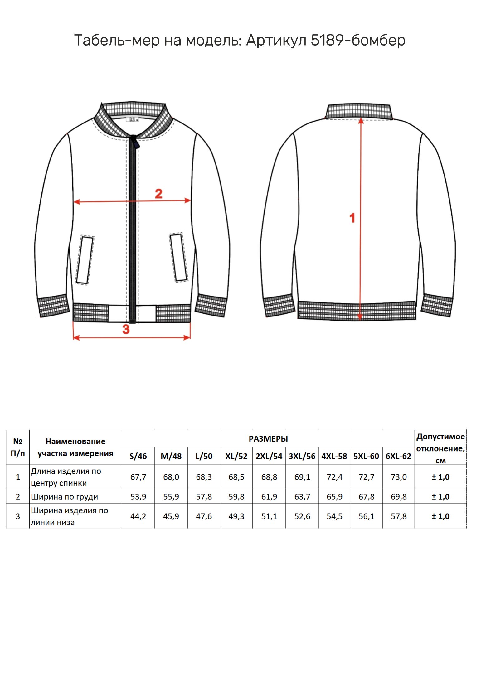 Таблица размеров