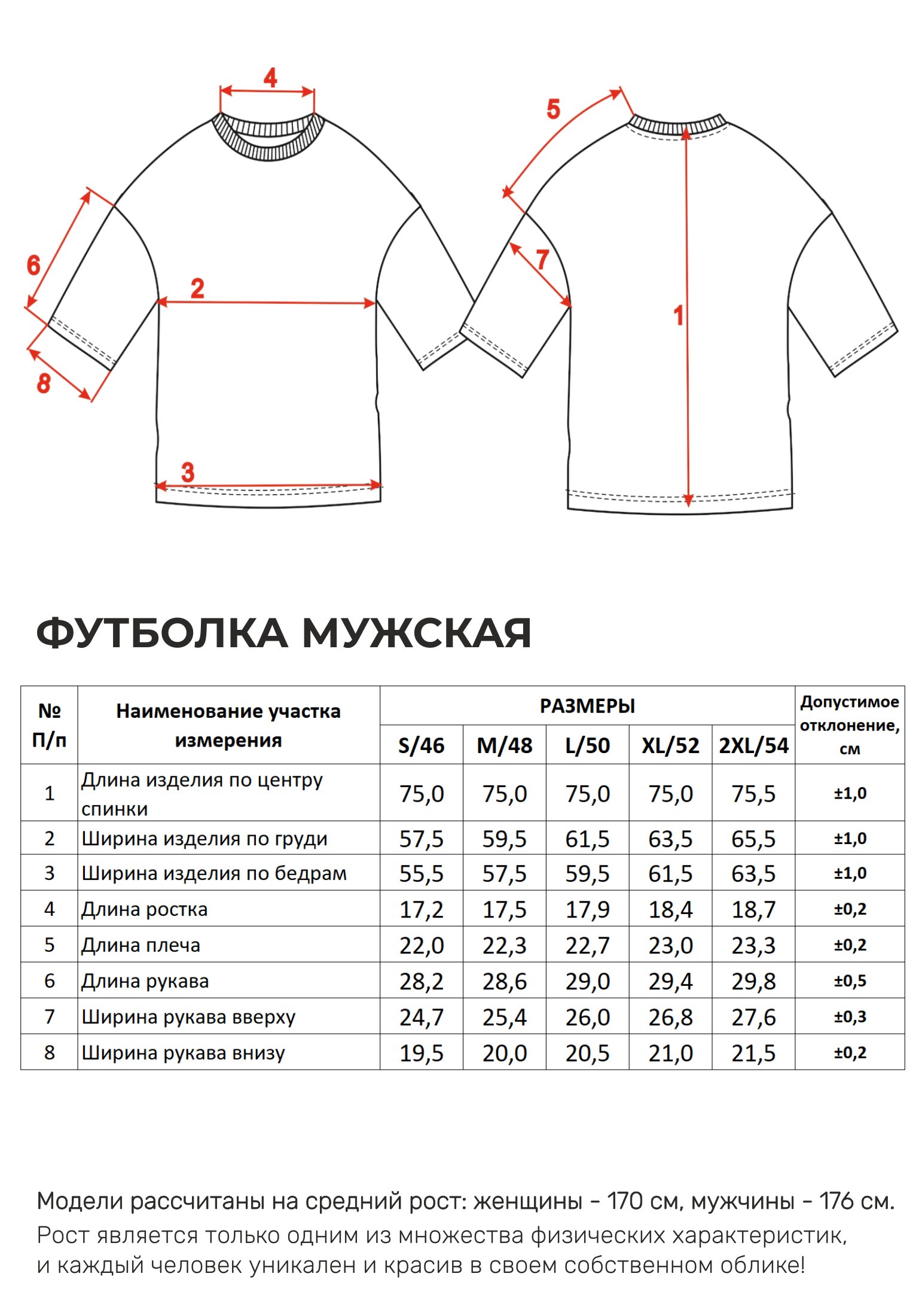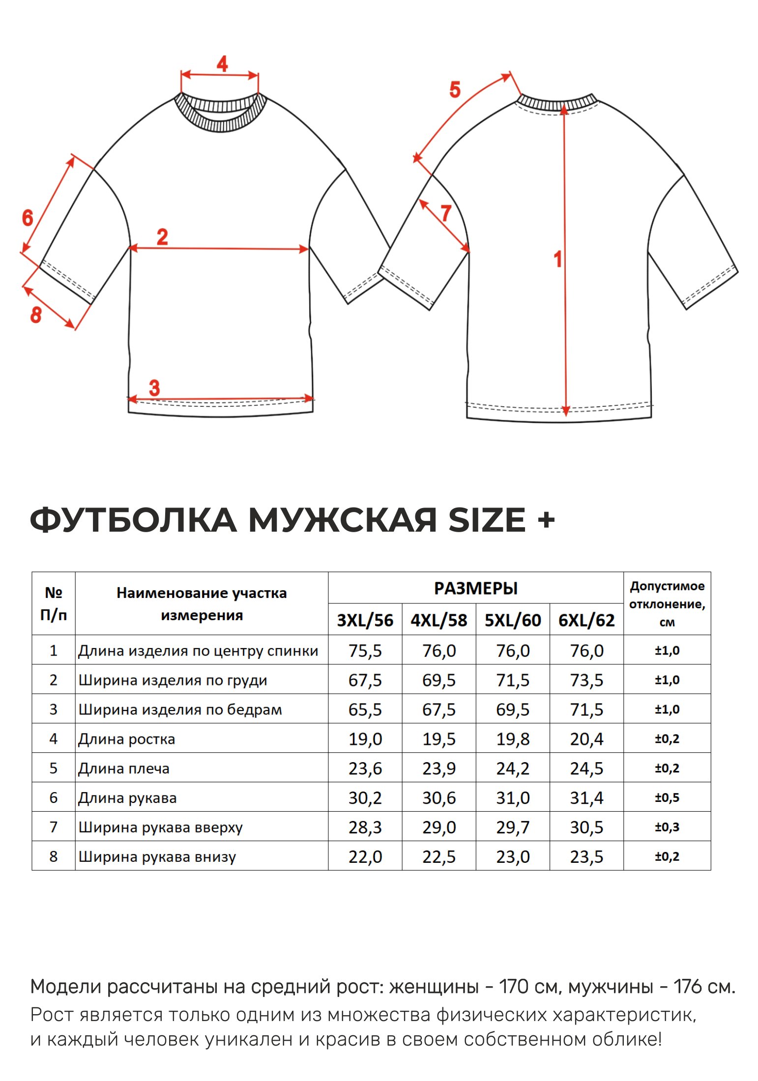 Параметры модели на фото -размер