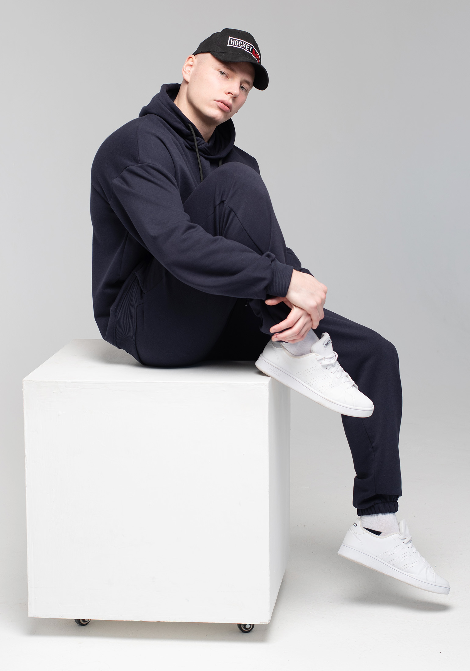 Мужской спортивный костюм выполнен из футера 3-ух нитки без начеса. В комплекте: худи и джоггеры из мягкого хлопка.На поясе брюк удобная и широкая резинка под шнуровку, что позволяет дополнительно регулировать изделие по объему, два боковых кармана. Худи свободного кроя, с удобным карманом «кенгуру». Модель без застёжки. Капюшон худи регулируется шнуром, несъемный, с подкладкой из основного полотна. Основной акцент – авторский принт на полочке худи. Эластичная тесьма по низу изделия и рукавам. Отличный вариант для прогулок , занятий спортом и повседневной носки. Гладить с изнанки. Стирка при t не более 30С. Деликатный отжим, отбеливание запрещено.