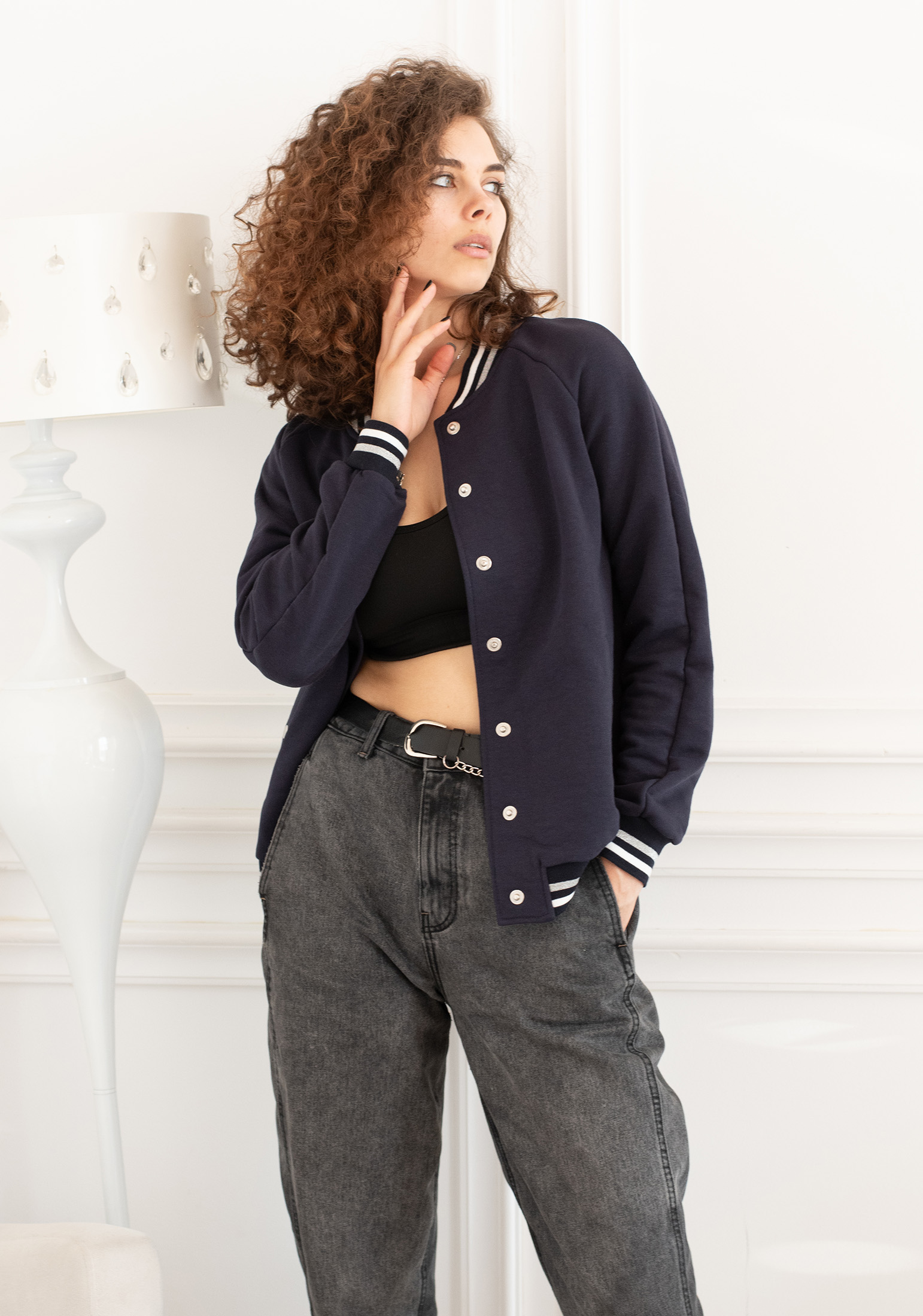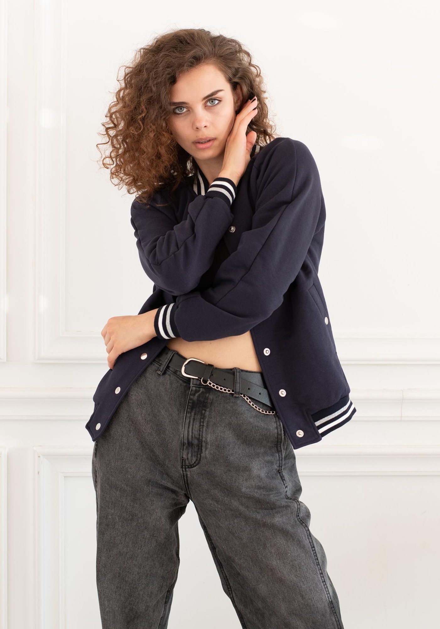 Актуальный, стильный женский бомбер на металлических кнопках, выполнен из высококачественного турецкого футера 3-х нитки без начёса - тренд уличной моды street style!. Модель прямого кроя, с рукавами реглан и с вместительными карманами листочками на кнопках. Эластичная тесьма по низу изделия и рукавам с добавлением люрекса. На прогулку, в школу или университет, на встречу с друзьями - трикотажный бомбер станет Вашей незаменимой вещью в гардеробе, актуальная в любой сезон и погоду. Отлично сочетается с брюками карго, джоггерами, джинсами, с кроп-топом, также образов «спорт-шик» с платьями и юбками мини и миди - Вы будете всегда выглядеть стильно! Гладить с изнанки. Стирка при t не более 30С. Деликатный отжим, отбеливание запрещено