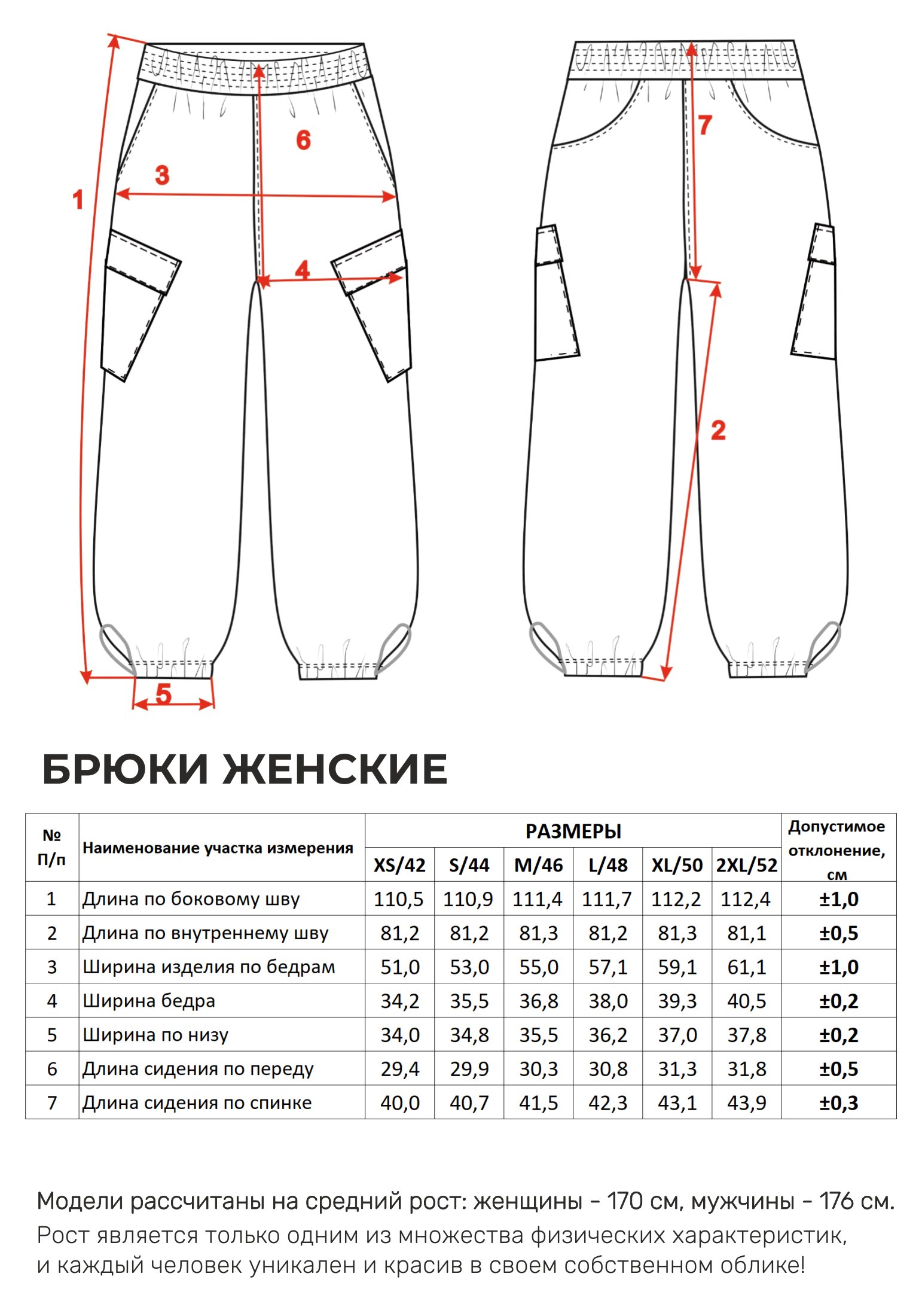 Параметры модели на фото -размер
