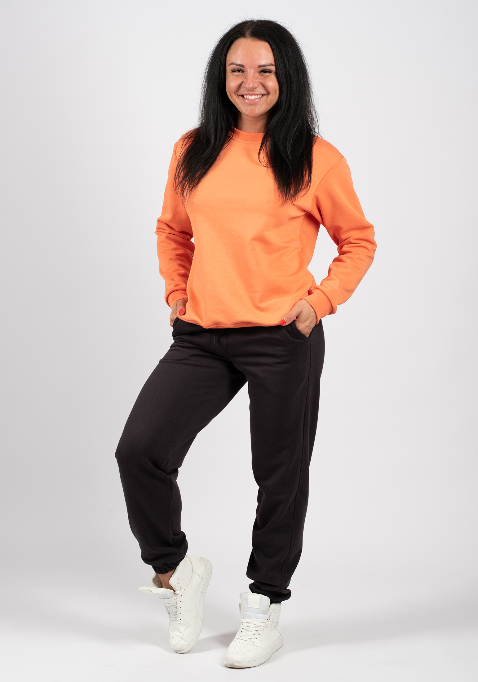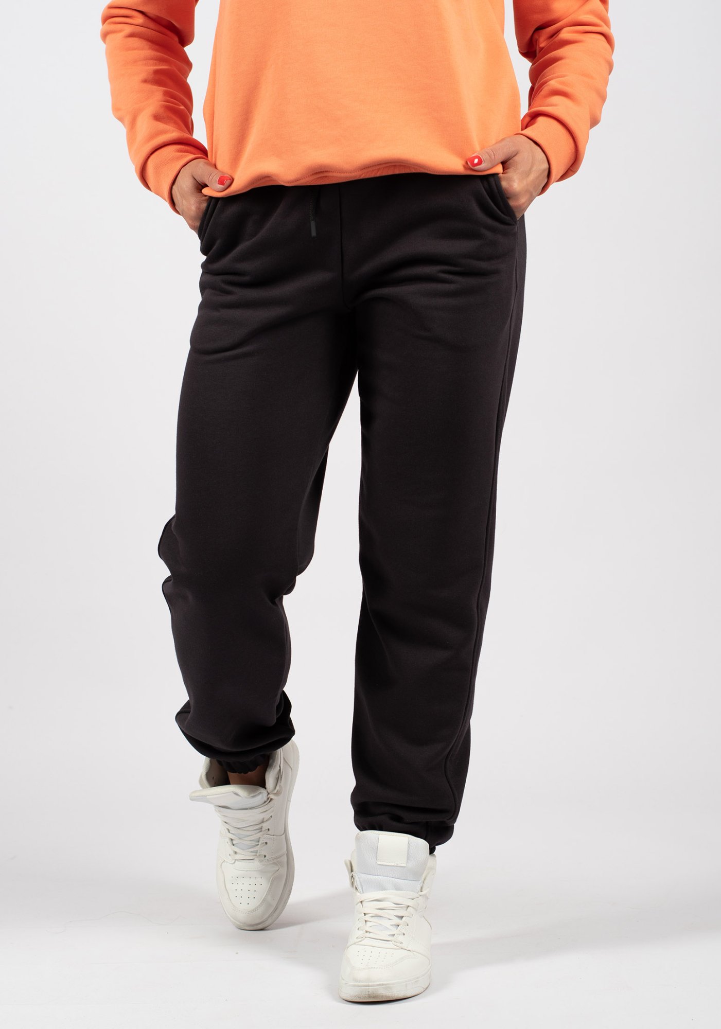 Женские спортивные брюки (джоггеры) из высококачественного турецкого футера 3-ех нитки без начеса. На поясе брюк удобная и широкая резинка под шнуровку, что позволяет дополнительно регулировать изделие по объему, два вместительных боковых кармана. Отличный вариант для прогулок, занятий спортом и повседневной носки. Гладить с изнанки. Стирка при t не более 30С. Деликатный отжим, отбеливание запрещено.