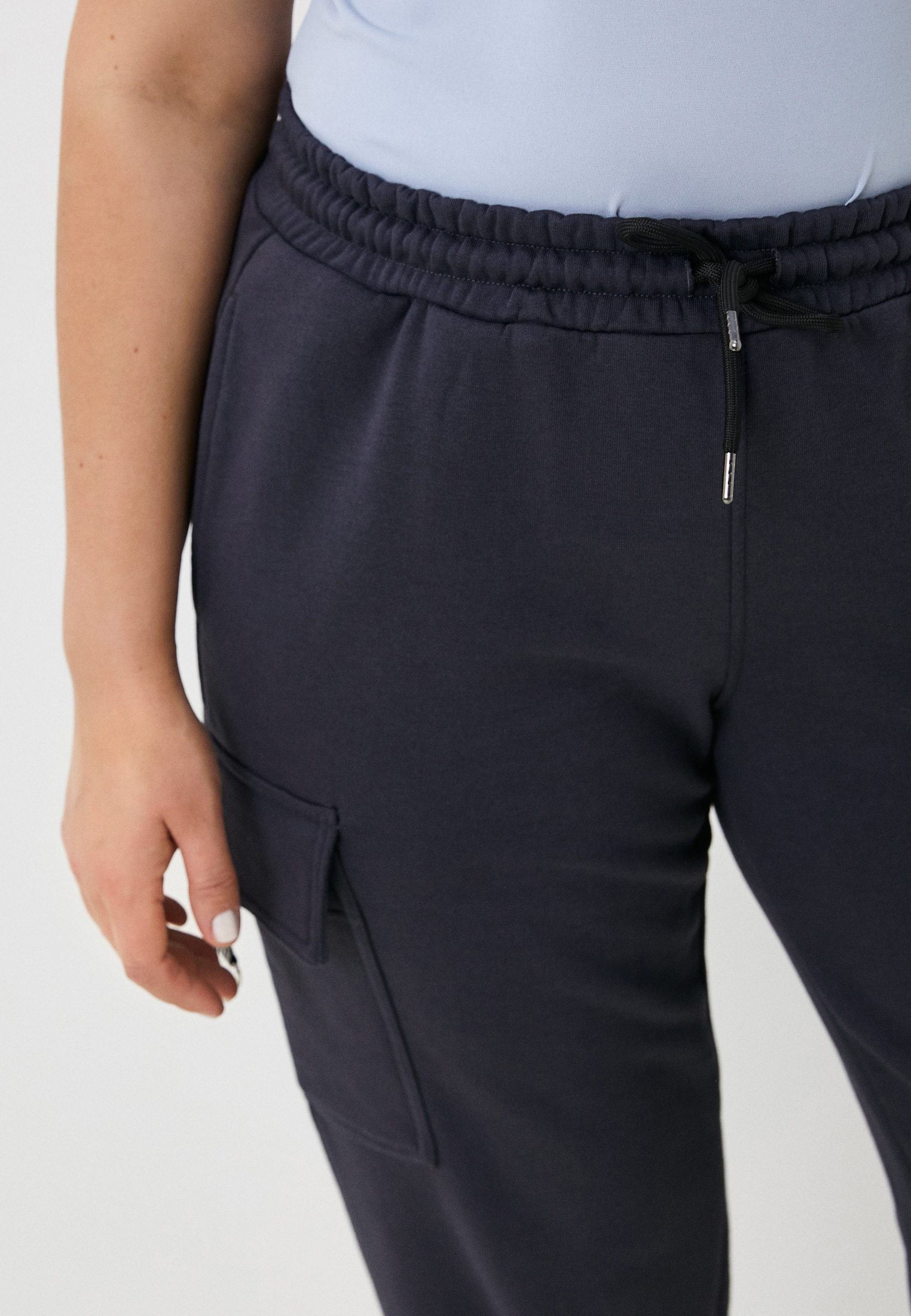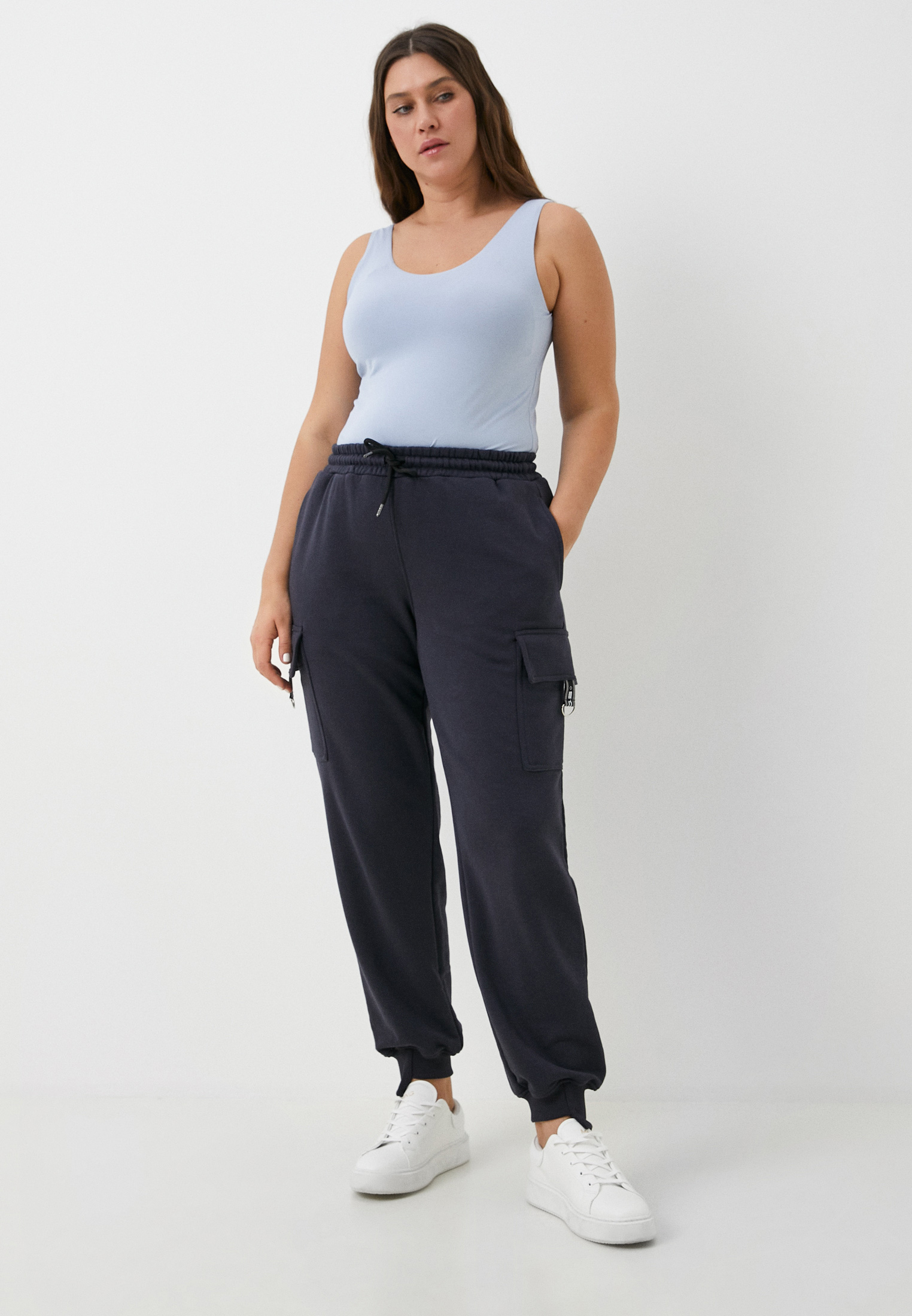 Женские спортивные брюки джоггеры в стиле карго размерной сетки SIZE+, выполнены из высококачественного турецкого футера 3-ех нитки без начеса. Комфортная высокая посадка создает элегантный силуэт, визуально удлиняет ноги и делает бёдра более изящными. На поясе брюк удобная и широкая резинка, шнур внутри пояса для возможности регулировки по фигуре. В данной модели имеется четыре функциональных кармана: два вдоль боковых швов, расположены в верху брюк, и два накладных кармана с клапанами по бокам изделия на линии бедра. По нижней части клапанов декоративный элемент из брендированной репсовой ленты со светоотражающими полосками, нижняя часть которой закреплена металлическим полукольцом. По низу изделия ассиметричные манжеты, которые ещё больше удлиняют и вытягивают силуэт. Свободный крой не стесняет Ваших движений. Отличный вариант для прогулок, занятий спортом и повседневной носки. Гладить с изнанки. Стирка при t не более 30С. Деликатный отжим, отбеливание запрещено.