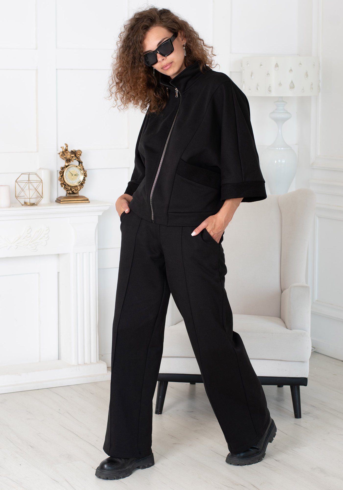 Стильные брюки палаццо со стрелками (защипами) выполненные из высококачественного турецкого футера 3-ех нитки без начеса. Стрелки защипы на брюках - это стильная и элегантная деталь, которая придает особый шик вашему образу. Трикотажные женские брюки свободного силуэта. На поясе удобная и широкая резинка со шнуром, два вместительных боковых кармана. Наша одежда свободного кроя - идеальное решение на каждый день. Такой крой даёт ощущение комфорта, свободы и раскованности. Наша актуальная модель будет прекрасным подарком на новый год, к 8 марта, день святого Валентина, на день рождение, на день матери. Сделано в России с любовью к Вам! Гладить с изнанки. Стирка при t не более 30С. Деликатный отжим, отбеливание запрещено. При соблюдении наших несложных правил ухода одежда DS будет радовать Вас долгое время!