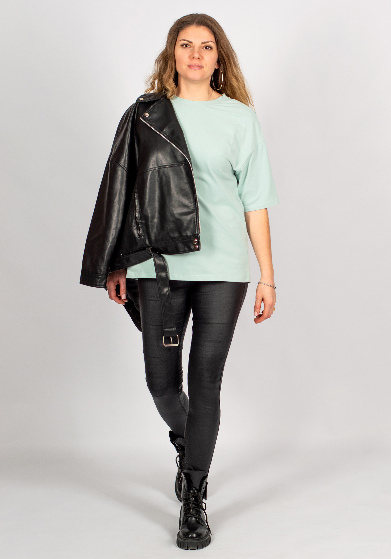 Стильная базовая женская футболка из премиального турецкого трикотажного полотна в стиле OVERSIZE с peach эффектом. Модель прямого, свободного кроя, с круглым вырезом ворота и спущенной линией плеча. Женская футболка - это базовая вещь в гардеробе любой современной девушки и женщины, является одной из самых удобных, популярных и незаменимых моделей одежды круглый год, сделает образ изысканным и современным. Наши невероятно удобные футболки отлично сочетаются с шортами, джинсами, юбками, джоггерами, кюлотами. Свободный крой и элегантная форма рукавов не только придают изделию стильный и модный вид, но и гарантируют его обладательнице комфорт даже в самые жаркие дни. Футболка - самый универсальный предмет женского гардероба, который подходит под любой образ, от строгой классики до спортивного стиля. Гладить с изнанки. Стирка при t не более30С. Деликатный отжим, отбеливание запрещено