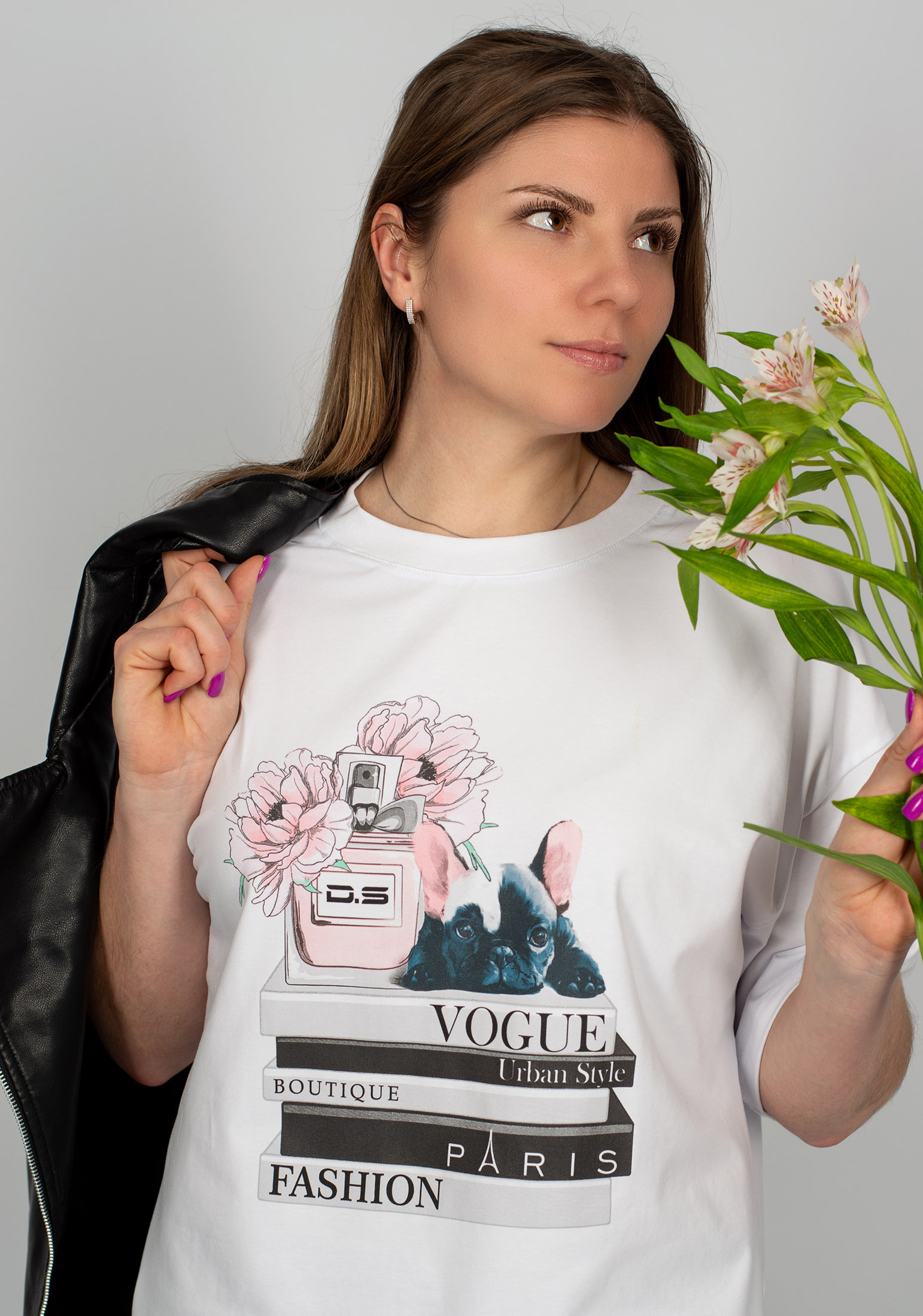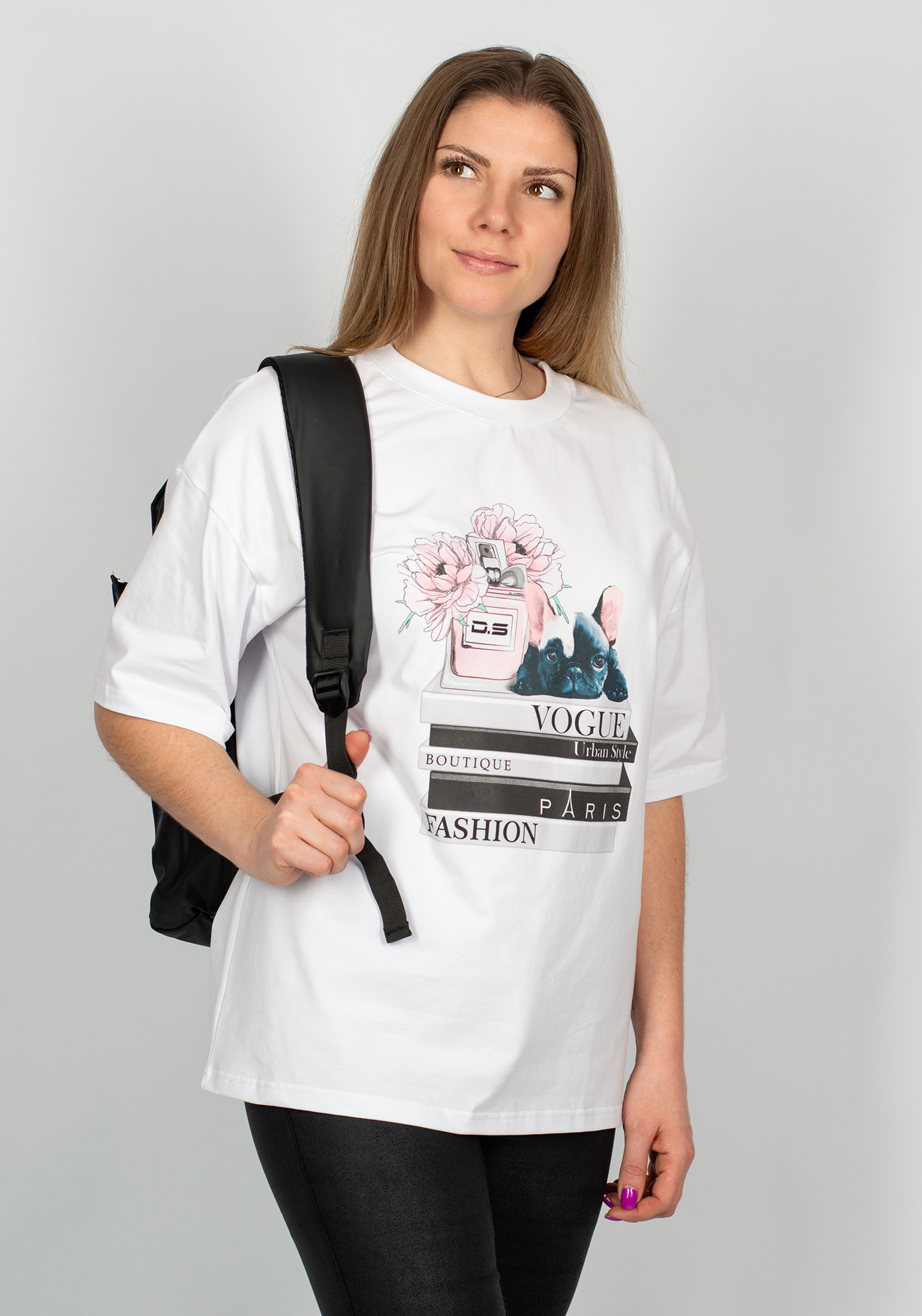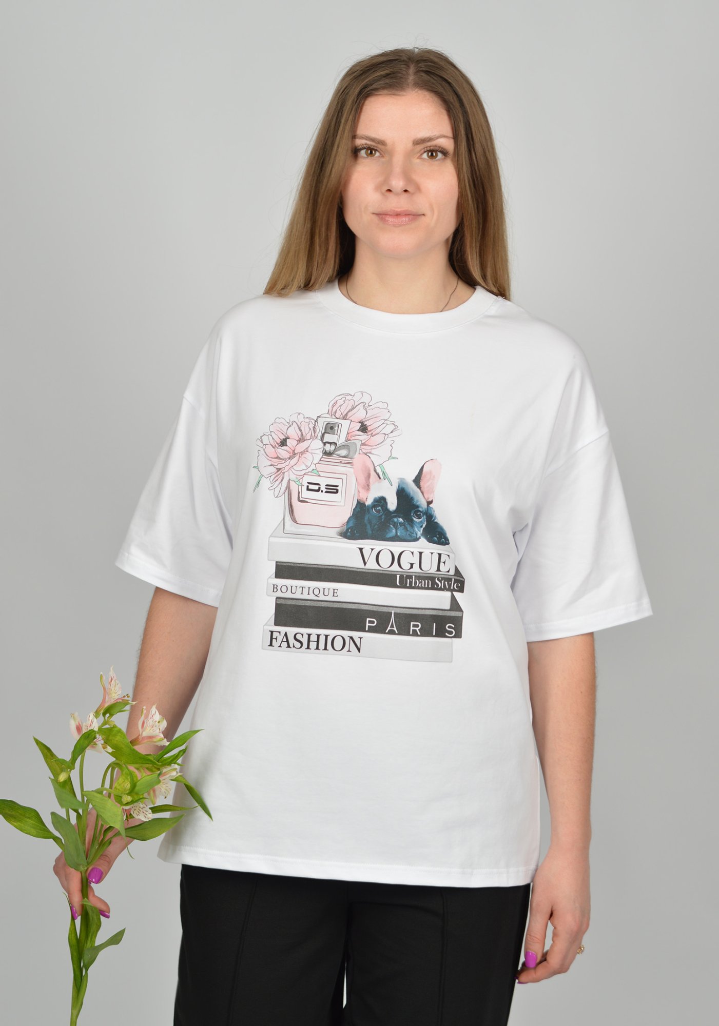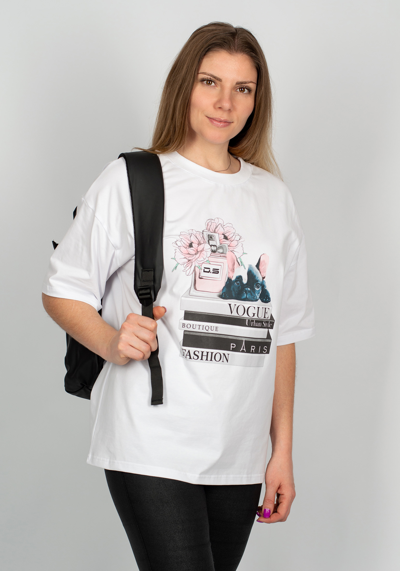 Стильная женская футболка из премиального турецкого трикотажного полотна в стиле OVERSIZE. Модель прямого, свободного кроя, с круглым вырезом ворота и спущенной линией плеча. На полочке изделия оригинальный принт. Женская футболка- это базовая вещь в гардеробе любой современной девушки и женщины, является одной из самых удобных, популярных и незаменимых моделей одежды круглый год, сделает образ изысканным и современным. Наши невероятно удобные футболки отлично сочетаются с шортами, джинсами, юбками, джоггерами, кюлотами. Свободный крой и элегантная форма рукавов не только придают изделию стильный и модный вид, но и гарантируют его обладательнице комфорт даже в самые жаркие дни. Футболка - самый универсальный предмет женского гардероба, который подходит под любой образ, от строгой классики до спортивного стиля. Гладить с изнанки. Стирка при t не более30С. Деликатный отжим, отбеливание запрещено.