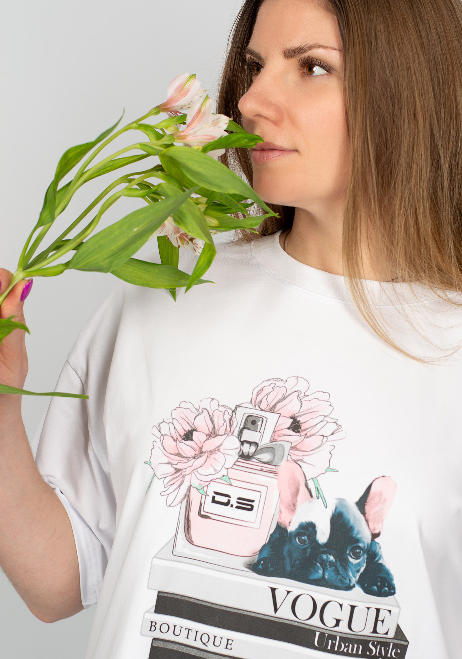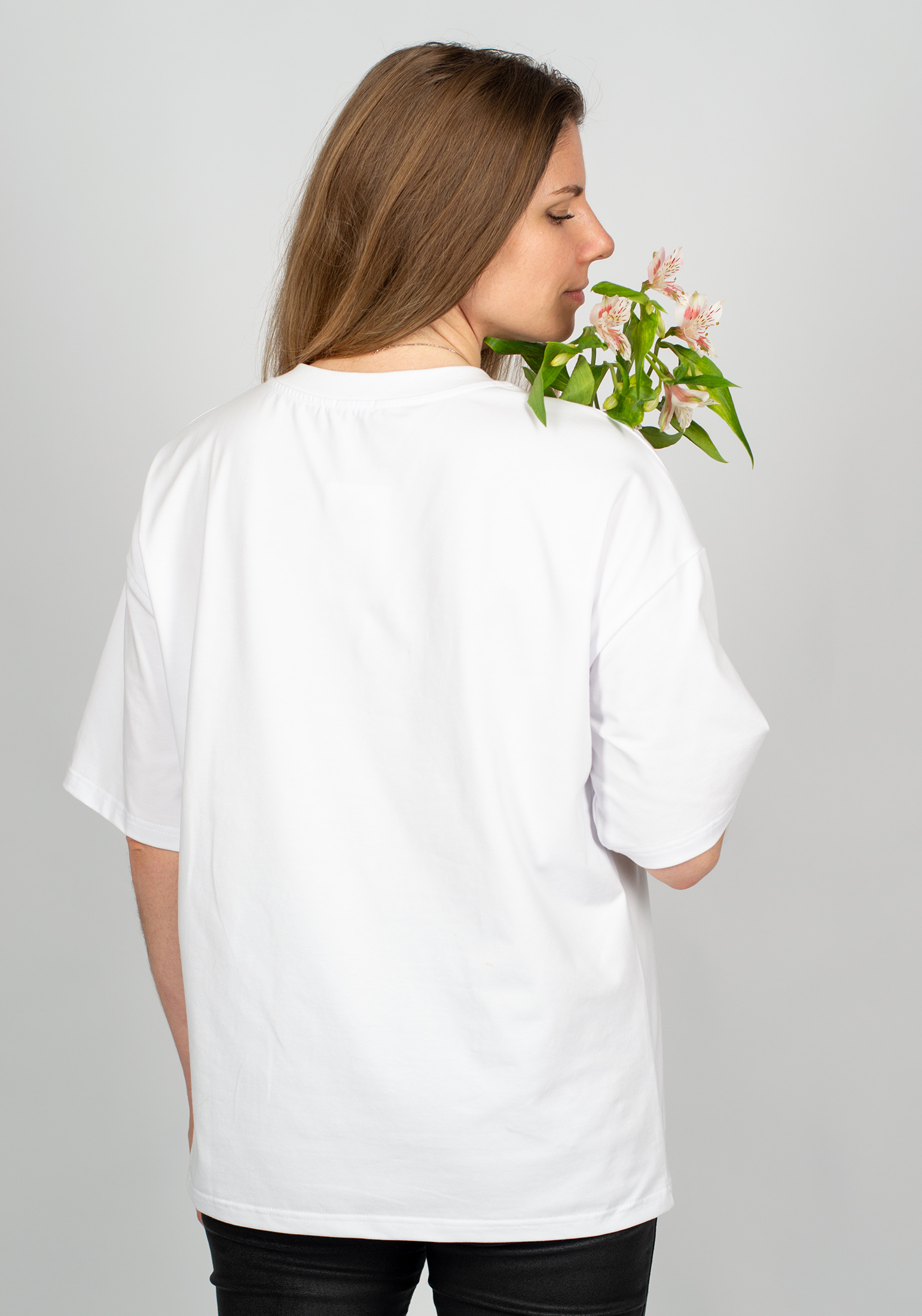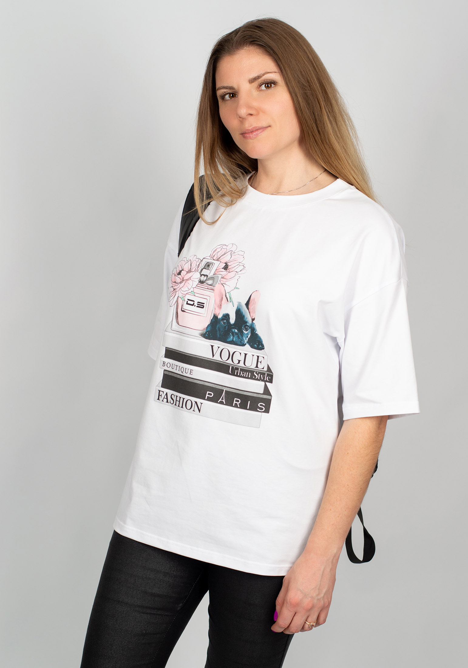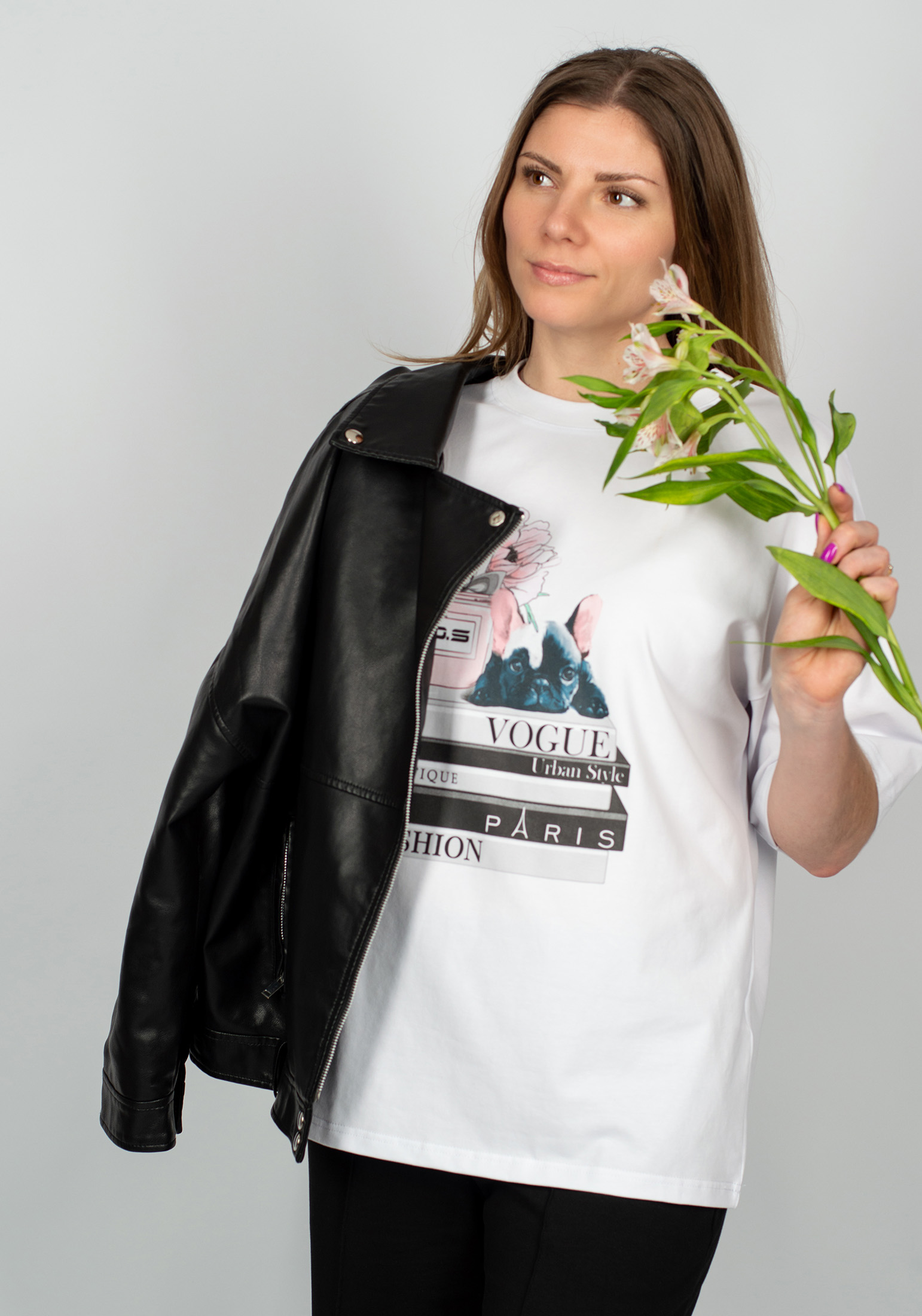 Стильная женская футболка из премиального турецкого трикотажного полотна в стиле OVERSIZE. Модель прямого, свободного кроя, с круглым вырезом ворота и спущенной линией плеча. На полочке изделия оригинальный принт. Женская футболка- это базовая вещь в гардеробе любой современной девушки и женщины, является одной из самых удобных, популярных и незаменимых моделей одежды круглый год, сделает образ изысканным и современным. Наши невероятно удобные футболки отлично сочетаются с шортами, джинсами, юбками, джоггерами, кюлотами. Свободный крой и элегантная форма рукавов не только придают изделию стильный и модный вид, но и гарантируют его обладательнице комфорт даже в самые жаркие дни. Футболка - самый универсальный предмет женского гардероба, который подходит под любой образ, от строгой классики до спортивного стиля. Гладить с изнанки. Стирка при t не более30С. Деликатный отжим, отбеливание запрещено.