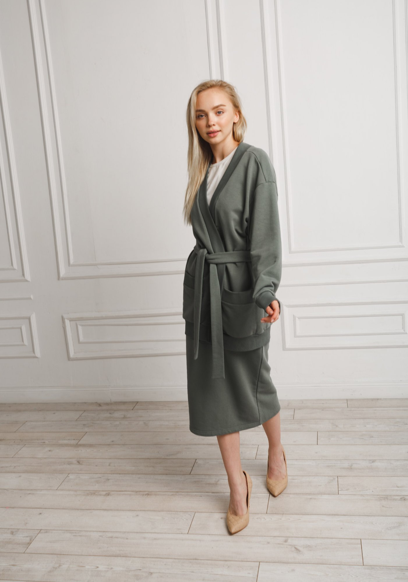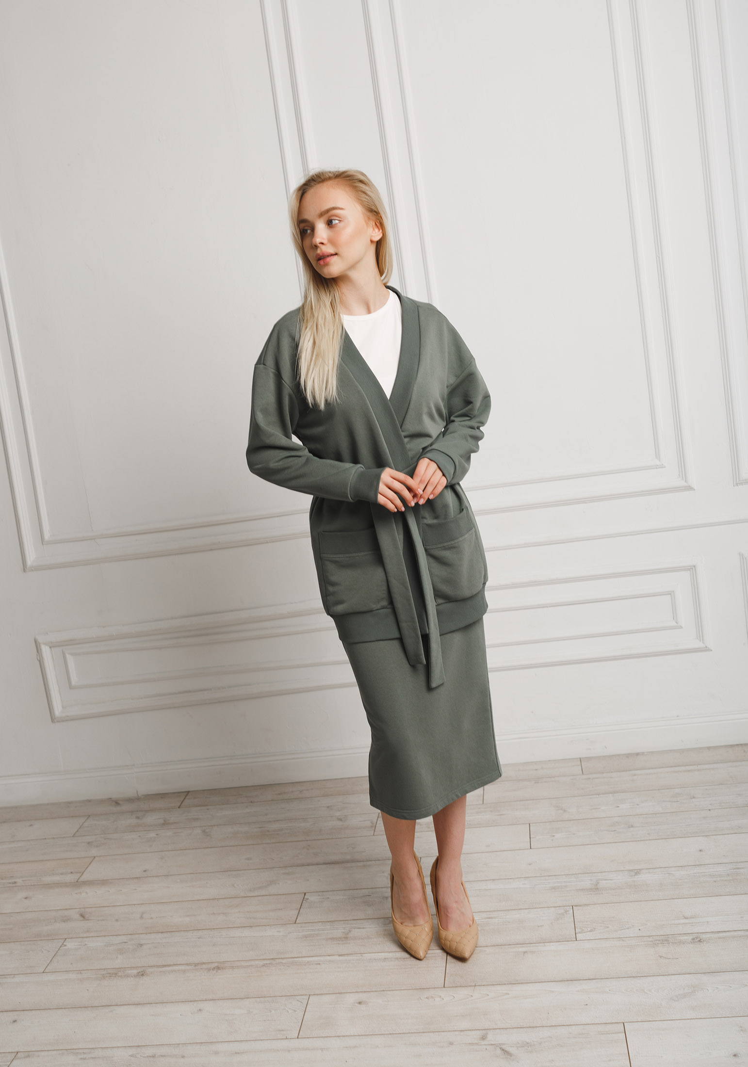 Невероятно удобный и практичный кардиган с поясом из высококачественного турецкого футера 3-ех нитки без начеса со сдвоенными размерами. На полочке изделия два вместительных накладных кармана. На спинке изделия брендированная нашивка из экокожи. Наш элегантный кардиган сделает ваш силуэт классическим, деловым, нарядным. Модный трикотажный кардиган – это совершенно универсальный элемент гардероба, с ним можно создать красивые образы на работу, в институт, в школу, в офис, на вечеринку, сочетая с совершенно любой обувью. Кардиган согреет Вас не только осенью или зимой, но ранней весной, и прохладным летним вечером. Гладить с изнанки.