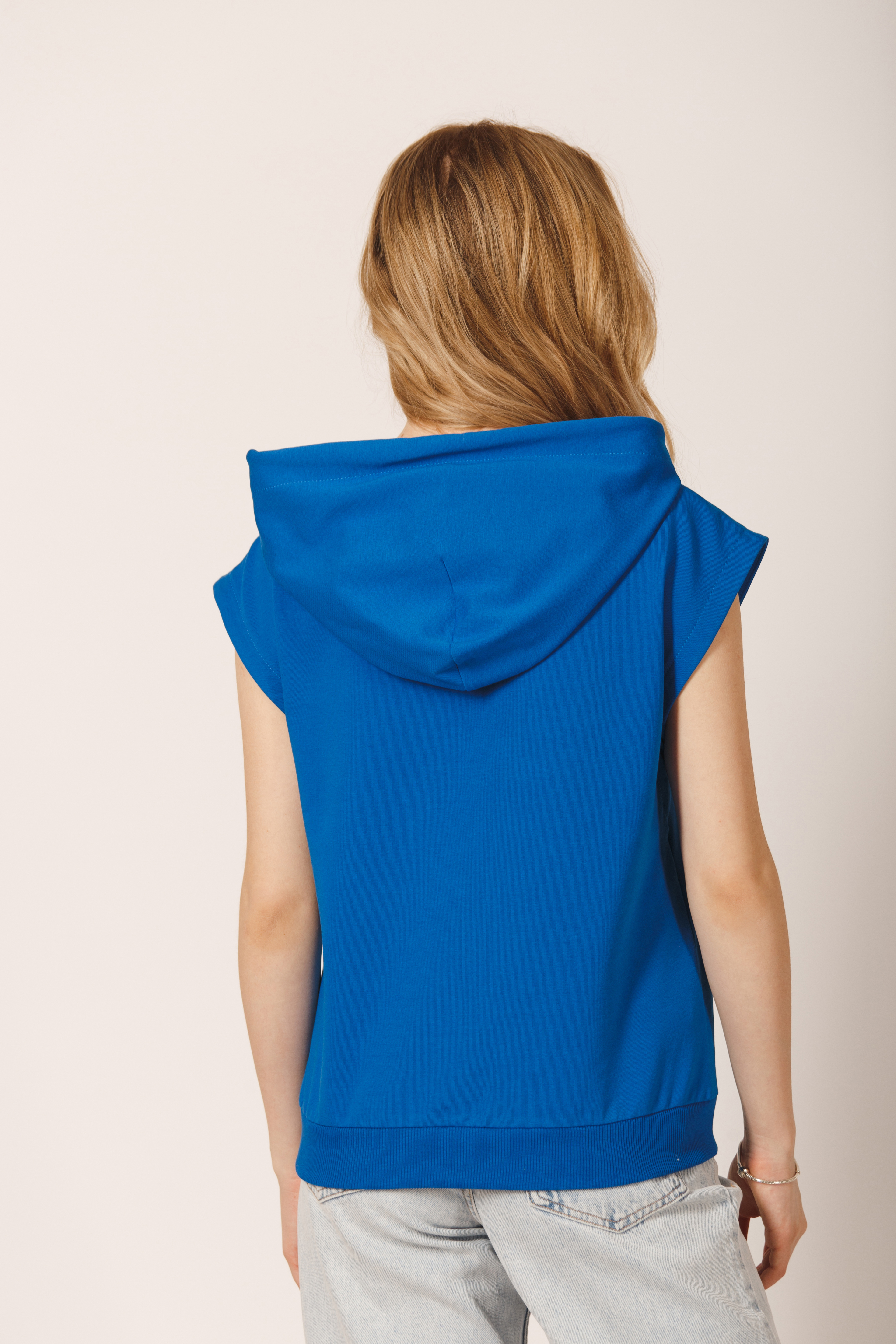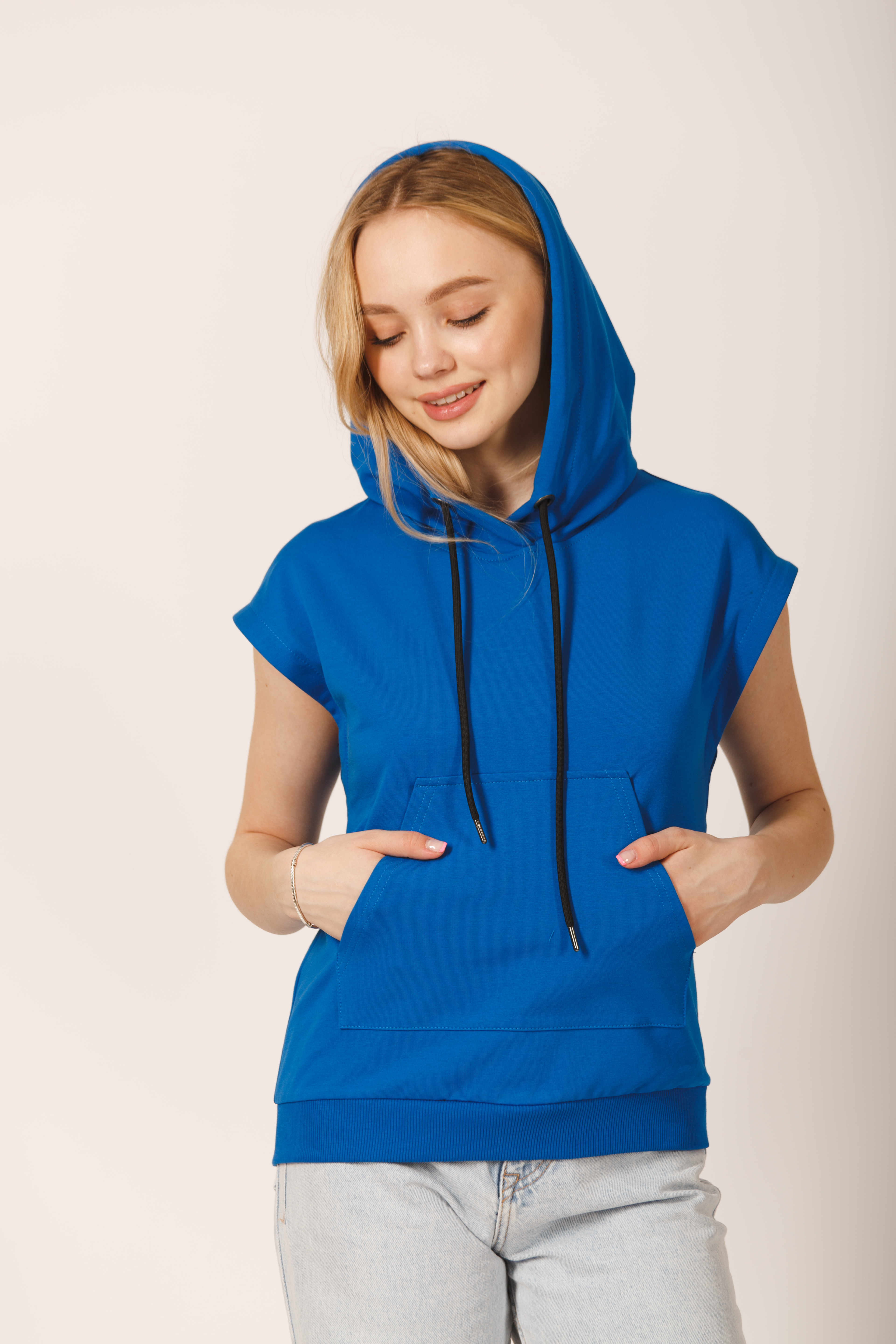 Стильный топ–худи без рукавов, выполнен из премиального турецкого футера 2-ух нитки. Наша трендовая модель, которая точно должна быть в гардеробе каждой девушки. Худи с несъёмным капюшоном, объём которого регулируется шнуром. На полочке изделия вместительный карман кенгуру. Проймы худи декорированы ластовицей из рибаны (кашкорсе). Отличный вариант на каждый день, в офис, на прогулку, на отдых. Гладить с изнанки. Стирка при t не более 30С. Деликатный отжим, отбеливание запрещено.