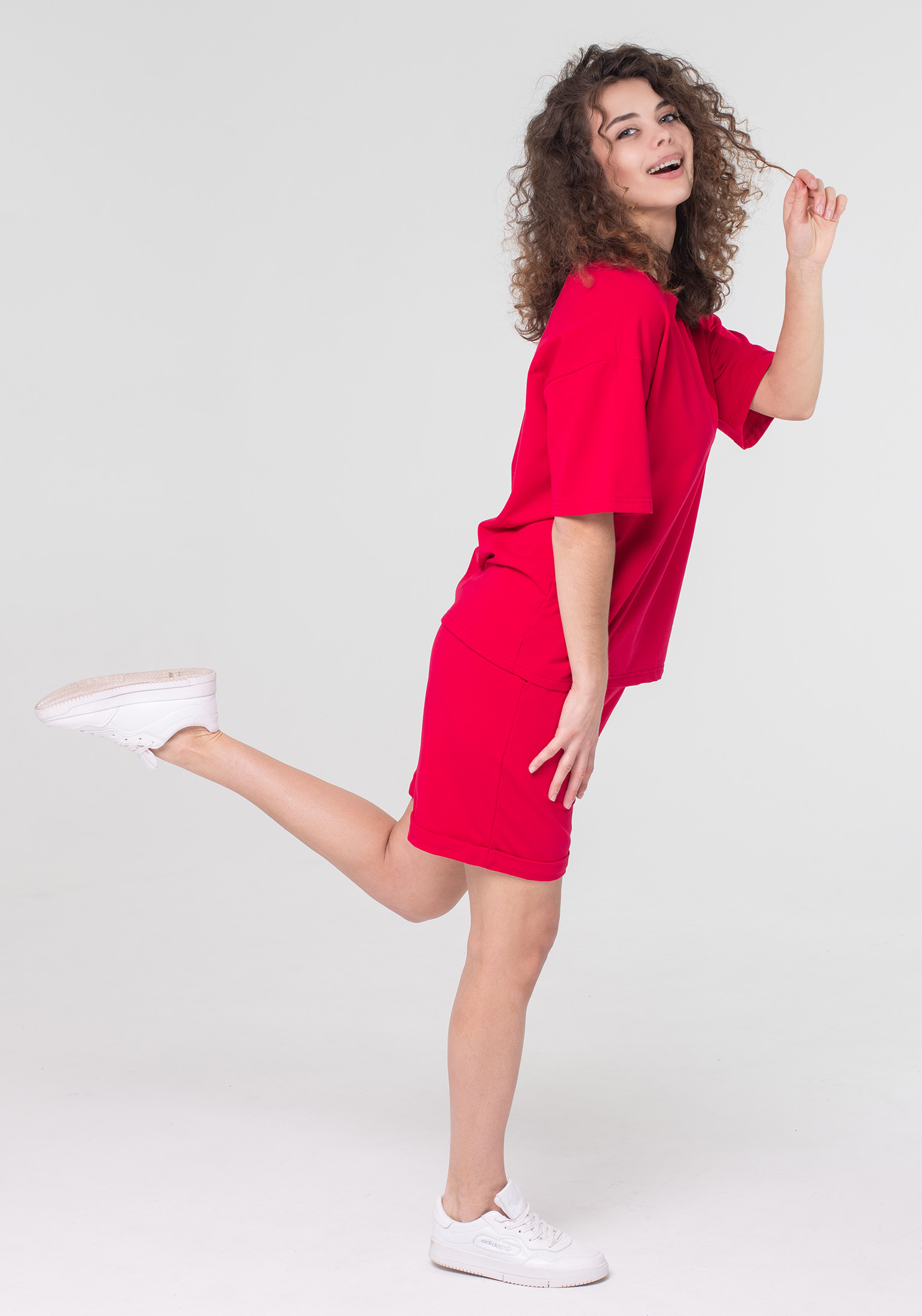 Стильный женский трикотажный костюм, выполнен из премиального турецкого футера 2-ух нитки без начеса . В комплекте шорты и футболка. Трикотажные женские шорты прямого силуэта Oversize. На поясе удобная и широкая резинка, два боковых кармана. Футболка свободного кроя Oversize с круглым вырезом ворота и коротким рукавом со спущенной линией плеча. Футболка будет одинаково стильно смотреться на разных типах фигуры. Одежда свободного кроя - идеальное решение на каждый день. Такой крой даёт ощущение комфорта, свободы и раскованности. Отличный вариант для прогулок, занятий спортом и повседневной носки. Гладить с изнанки. Стирка при t не более 30С. Деликатный отжим, отбеливание запрещено.