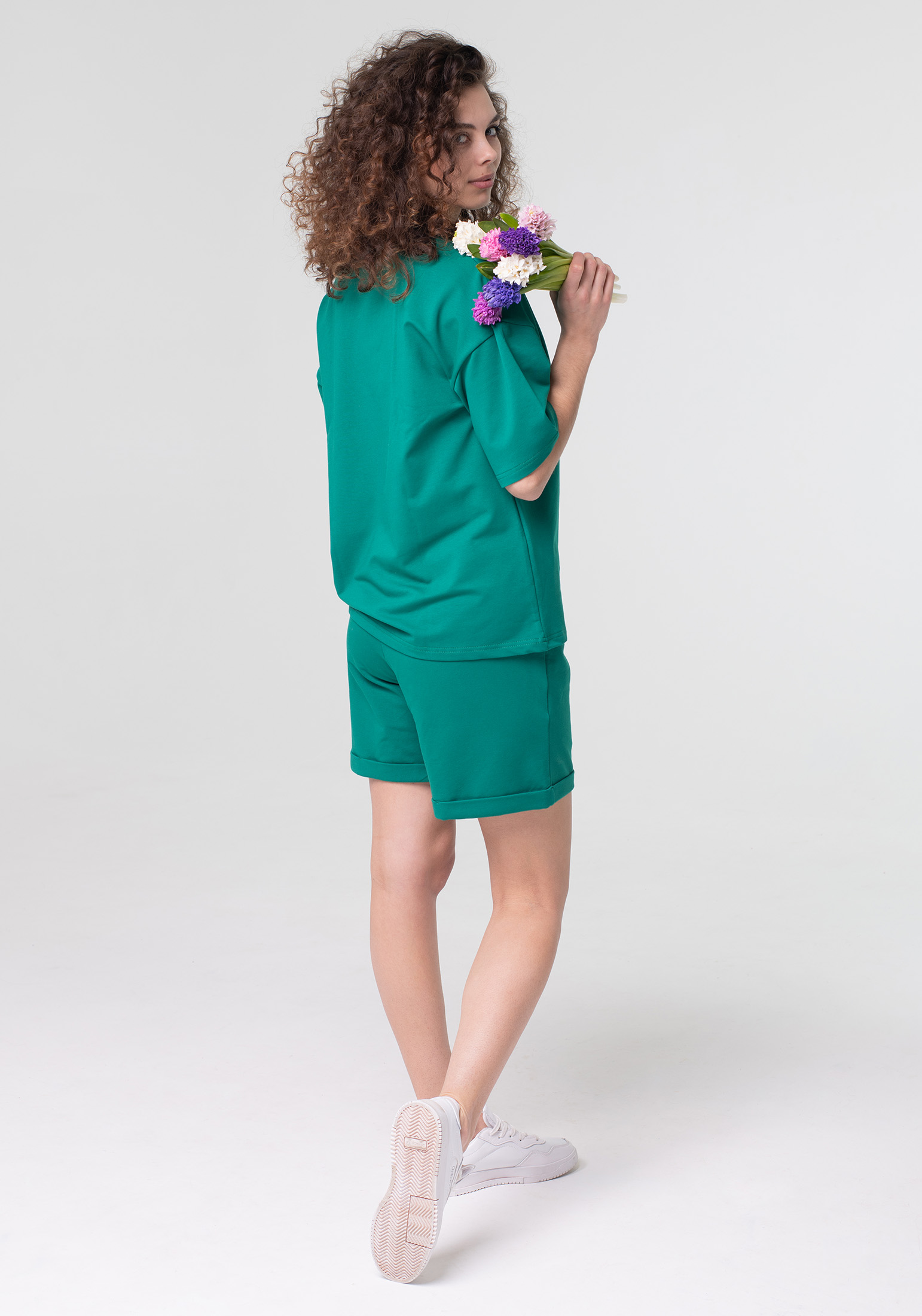 Стильный женский трикотажный костюм, выполнен из премиального турецкого футера 2-ух нитки без начеса . В комплекте шорты и футболка. Трикотажные женские шорты прямого силуэта Oversize. На поясе удобная и широкая резинка, два боковых кармана. Футболка свободного кроя Oversize с круглым вырезом ворота и коротким рукавом со спущенной линией плеча. Футболка будет одинаково стильно смотреться на разных типах фигуры. Одежда свободного кроя - идеальное решение на каждый день. Такой крой даёт ощущение комфорта, свободы и раскованности. Отличный вариант для прогулок, занятий спортом и повседневной носки. Гладить с изнанки. Стирка при t не более 30С. Деликатный отжим, отбеливание запрещено.