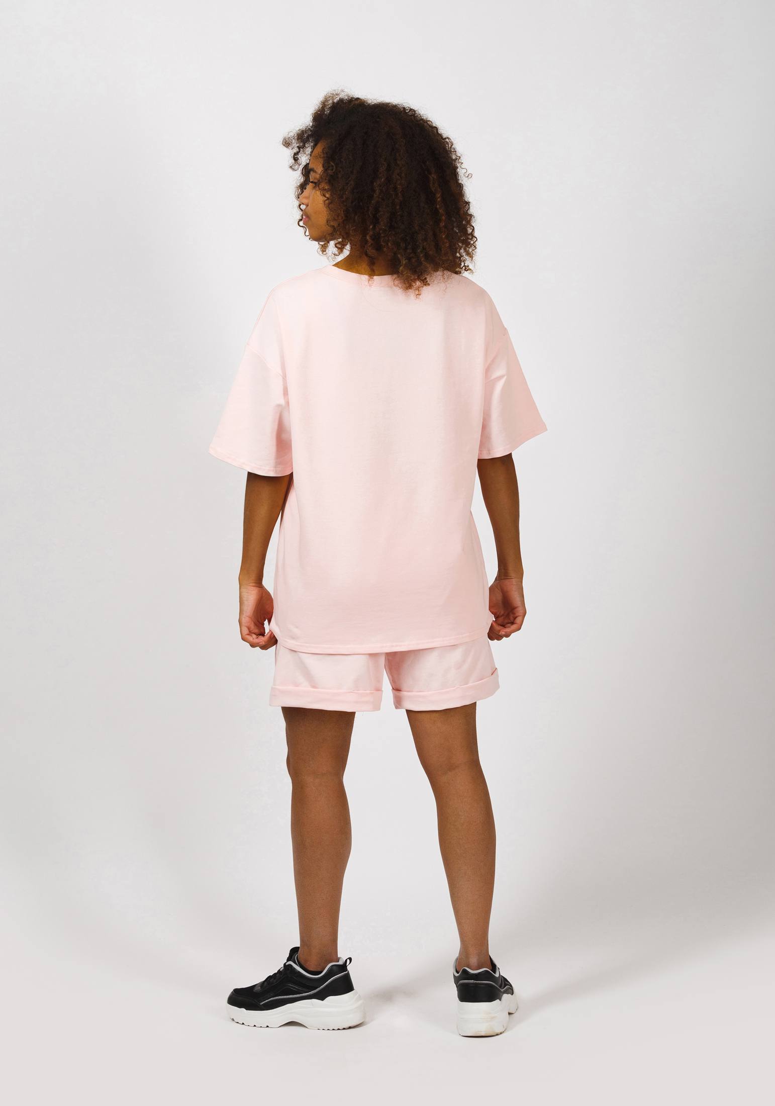 Стильный женский трикотажный костюм, выполнен из премиального турецкого футера 2-ух нитки без начеса . В комплекте шорты и футболка. Трикотажные женские шорты прямого силуэта Oversize. На поясе удобная и широкая резинка, два боковых кармана. Футболка свободного кроя Oversize с круглым вырезом ворота и коротким рукавом со спущенной линией плеча. Футболка будет одинаково стильно смотреться на разных типах фигуры. Одежда свободного кроя - идеальное решение на каждый день. Такой крой даёт ощущение комфорта, свободы и раскованности. Отличный вариант для прогулок, занятий спортом и повседневной носки. Гладить с изнанки. Стирка при t не более 30С. Деликатный отжим, отбеливание запрещено.