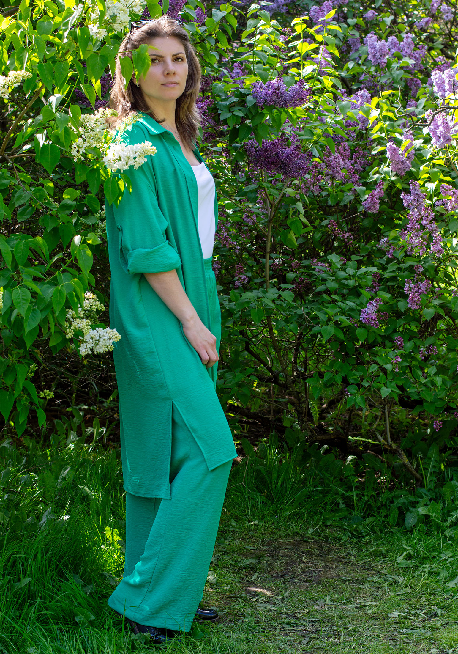Летний женский костюм - идеальный выбор для стильных и модных девушек и женщин. Наш костюм состоит из брюк палаццо свободного силуэта и удлинённой рубашки с поясом. Комплект обладает оригинальным дизайном, изделия выполнены из текстильного жатого полотна дорна. Костюм ОВЕРСАЙЗ из легкой струящейся ткани - отличный вариант для повседневной носки, особенно в летнюю жаркую погоду. На поясе брюк удобная и широкая резинка, два вместительных функциональных боковых кармана. Легкие и свободные брюки палаццо универсальны, их можно носить на пляже, дома и на отдыхе, с рубашкой и с любым другим верхом: топом, майкой, футболкой, блузкой, кофтой. Рубашка оверсайз с пуговицами и прямые брюки на резинке создадут идеальный комплект для любого торжества. Так же комплект можно носить по раздельности, создавая множество стильных образов. Рубашку можно носить отдельно и с любым низом и как платье с поясом. Универсальный рукав длинный, но его легко трансформировать в рукав 3/4, благодаря удобной застежке. Рубашку можно носить как платье летнее или домашнее, так и как легкую накидку в прохладные вечера. Наша одежда свободного кроя - идеальное решение на каждый день. Такой крой даёт ощущение комфорта, свободы и раскованности - настоящая находка на жаркое лето! Отличный и незаменимый вариант повседневного гардероба, обеспечивающий свободу движений. Легкость, удобство, отличная воздухопроницаемость - все это делает нашу модель идеальным выбором! Удобный крой нашего костюма подойдет как для женщин и девушек с идеальными параметрами, так и для представительниц больших форм. Костюм прекрасно подойдет для дома, для отдыха на пляже, на море. Он будет идеален как пляжный вариант, благодаря легкой быстросохнущей ткани. Наша актуальная нарядная модель будет прекрасным подарком на новый год, к 8 марта, день святого Валентина, на день рождение, на день матери. Сделано в России с любовью к Вам! Гладить с изнанки. Стирка при t не более 30С, ткань после стирки дает небольшую усадку! Деликатный отжим, отбеливание запрещено. При соблюдении наших несложных правил ухода одежда DS будет радовать Вас долгое время!