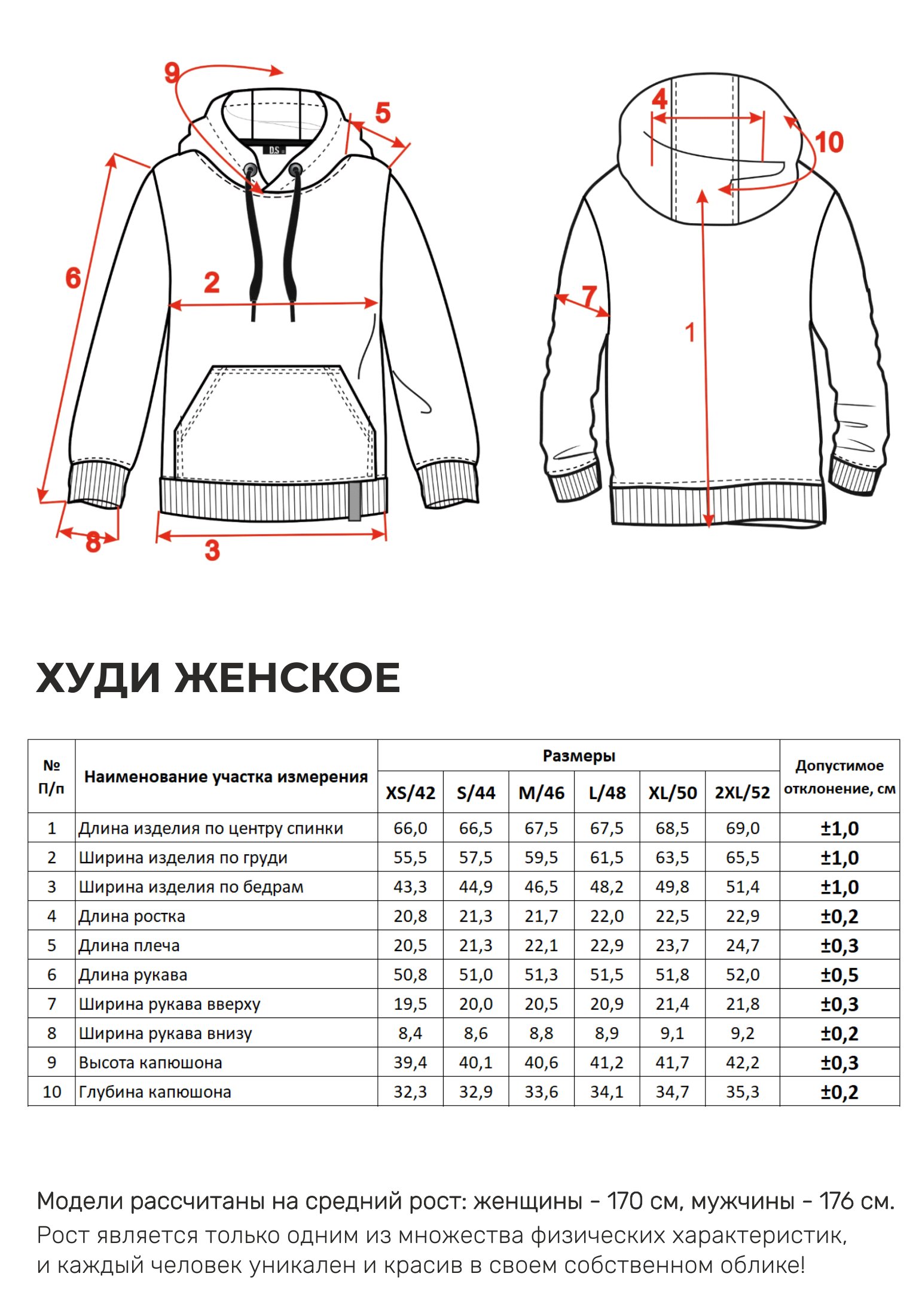 Параметры модели на фото -размер