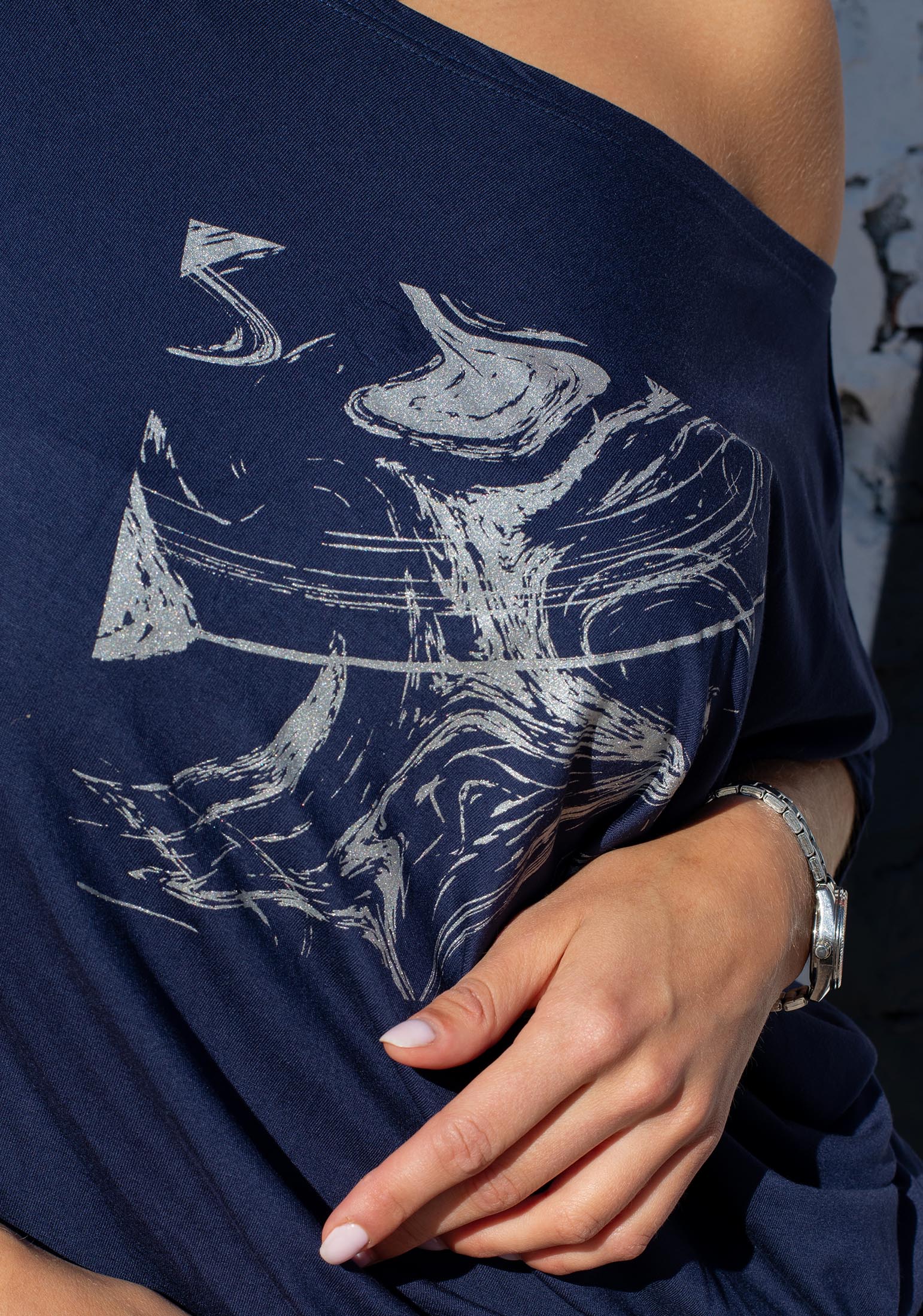 Уникальный женский лонгслив свободного кроя с укороченным рукавом, в стиле "Летучая мышь" с возможностью открыть одно плечо, выполнен из премиального турецкого полотна. На полочке изделия оригинальный фольгированный принт. Оригинальный дизайн обязательно привлечет к себе внимание. Качественный состав ткани обеспечивает комфорт при носке и гарантирует высокую износостойкость. Наш нарядный лонгслив отлично сочетается как с классическим пиджаком, брюками, юбками, так и с джинсами, является составной частью стиля сasual. Эластичный трикотажный лонгслив создаст неповторимый образ, который позволит вам одинаково стильно выглядеть на работе, в офисе, дома, а с дополнительными аксессуарами будет шикарен на праздниках и торжествах. Элегантный лонгслив является одной из самых удобных, популярных и незаменимых моделей одежды круглый год, сделает образ изысканным. Лонгслив свободного кроя - идеальное решение на каждый день. Такая форма изделия даёт ощущение комфорта, свободы и раскованности. Наша универсальная модель станет лучшим подарком жене, дочке, подруге, любимой или маме. Гладить с изнанки. Стирка при t не более 30С. Деликатный отжим, отбеливание запрещено. При соблюдении наших несложных правил ухода одежда DS будет радовать Вас долгое время!