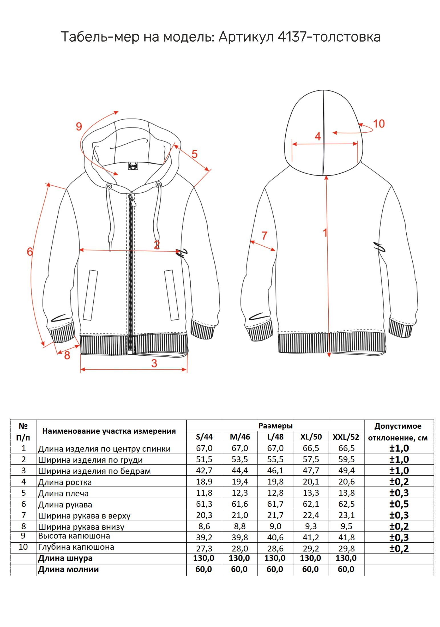 Параметры модели на фото -размер