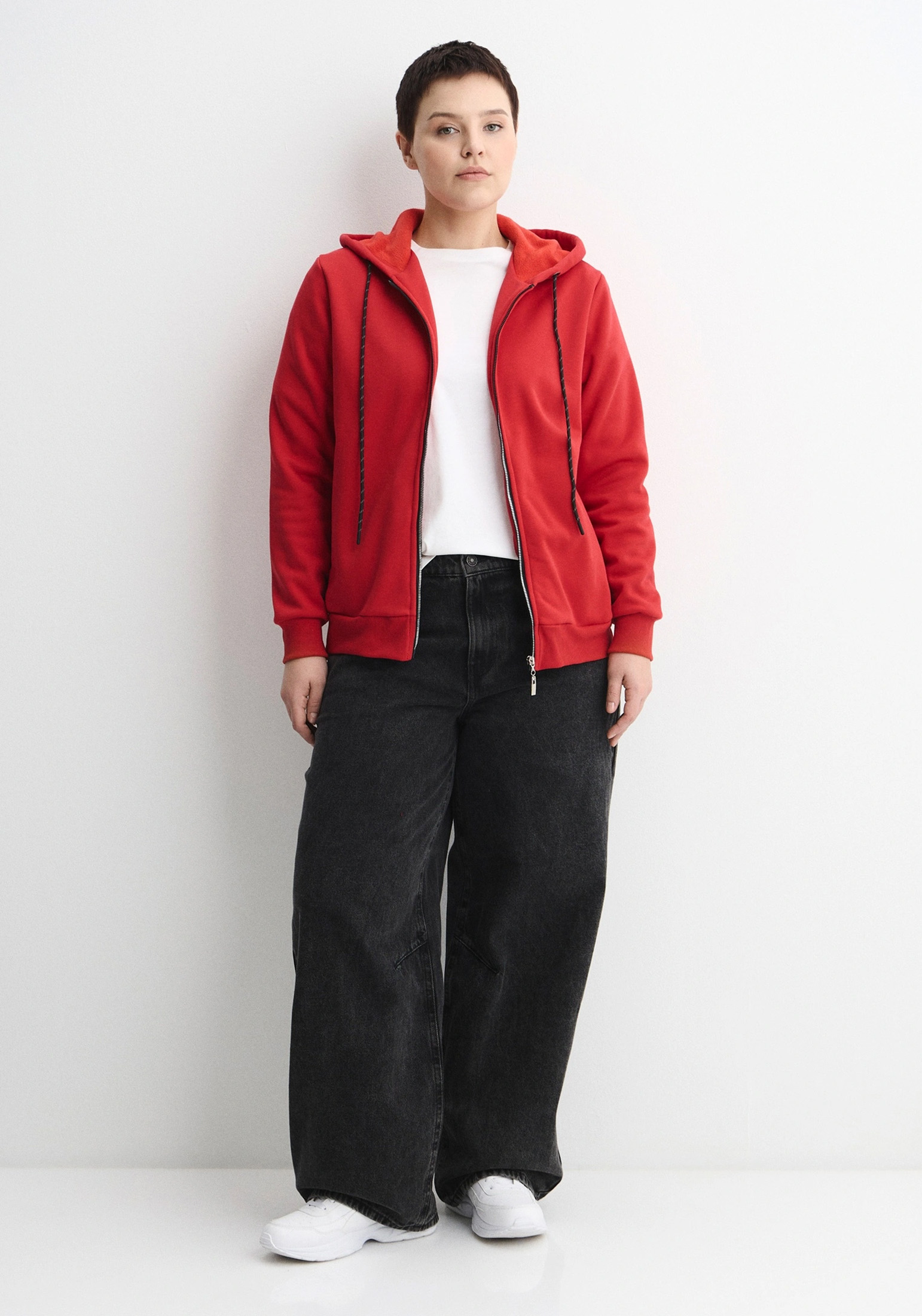Женская тёплая толстовка с капюшоном, на молнии, выполнена из качественного мягкого трикотажного полотна – интерсофт (футер с флисом). Модель прямого силуэта, изделие без подкладки. Объём капюшона толстовки регулируется шнуром. На полочке изделия объёмные и вместительные карманы с листочками. Рельефная эластичная трикотажная резинка по низу изделия и рукавам. Трендовый дизайн делает нашу толстовку стильной частью повседневного женского гардероба. Свободный крой не стесняет Ваших движений. Женская базовая толстовка на молнии - это стиль, комфорт и практичность. Отличный вариант для занятий спортом, прогулок, рыбалки, охоты, похода и повседневной носки. Толстовку на молнии идеально носить весной, летом и осенью и ею можно заменить ветровку и олимпийку, бомбер или худи. Легкий и функциональный материал изделия обеспечит комфорт в любое время года: свойство ткани позволяет выводить лишнюю влагу, сохранять тепло, и оставлять тело сухим. Наша толстовка станет лучшим подарком на любой праздник! Гладить с изнанки. Стирка при t не более 30С. Деликатный отжим, отбеливание запрещено. При соблюдении наших несложных правил ухода одежда DS будет радовать Вас долгое время!