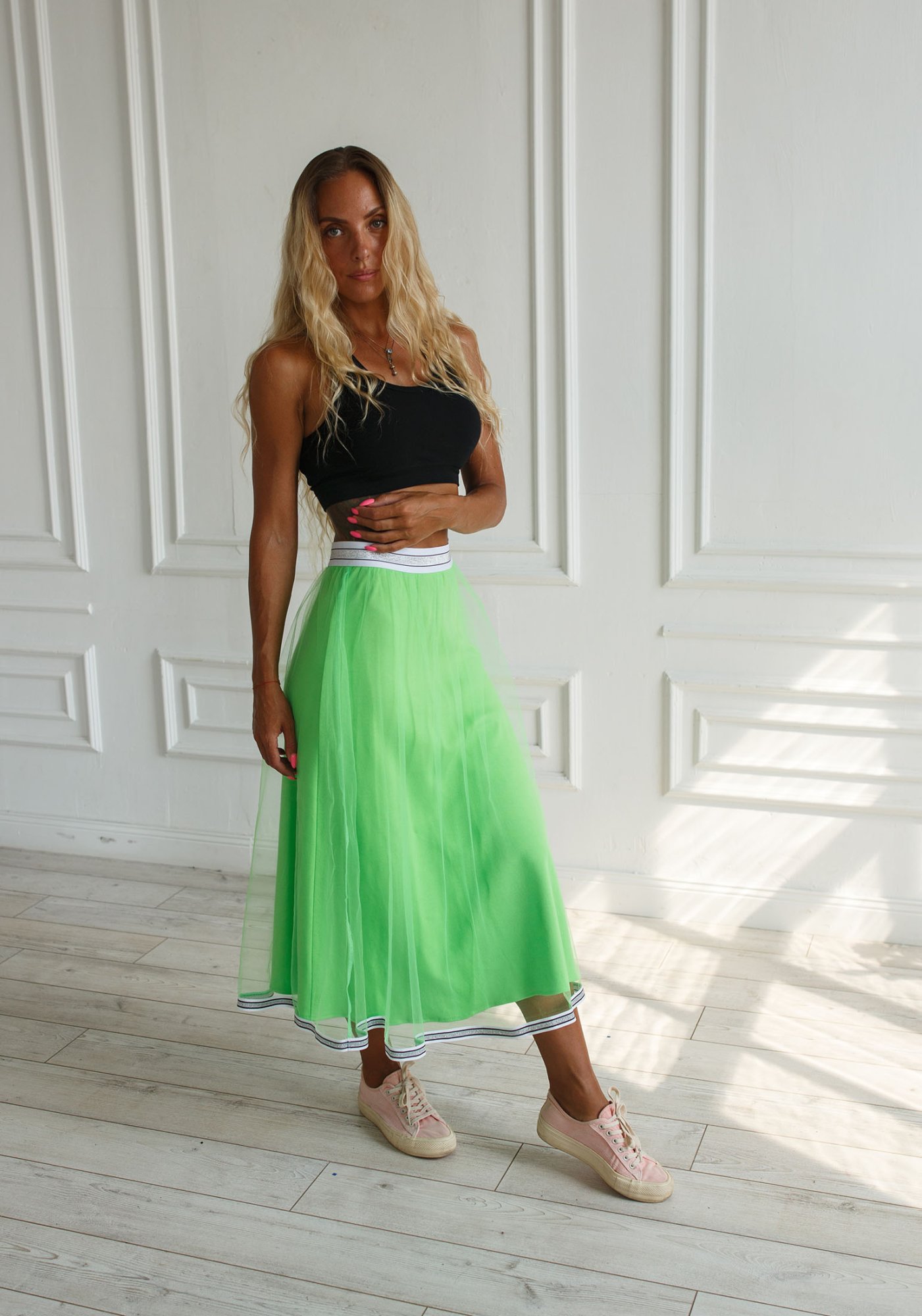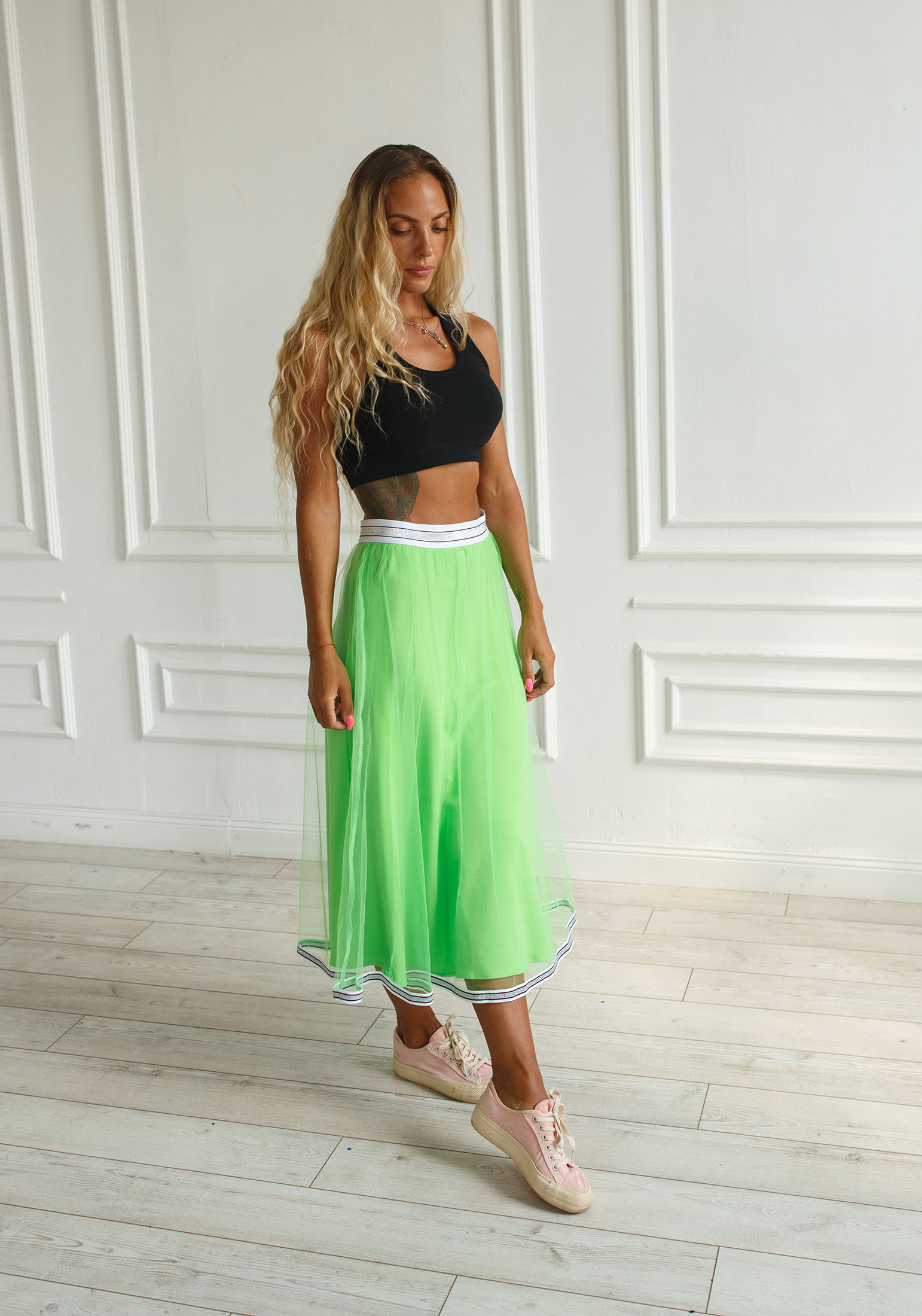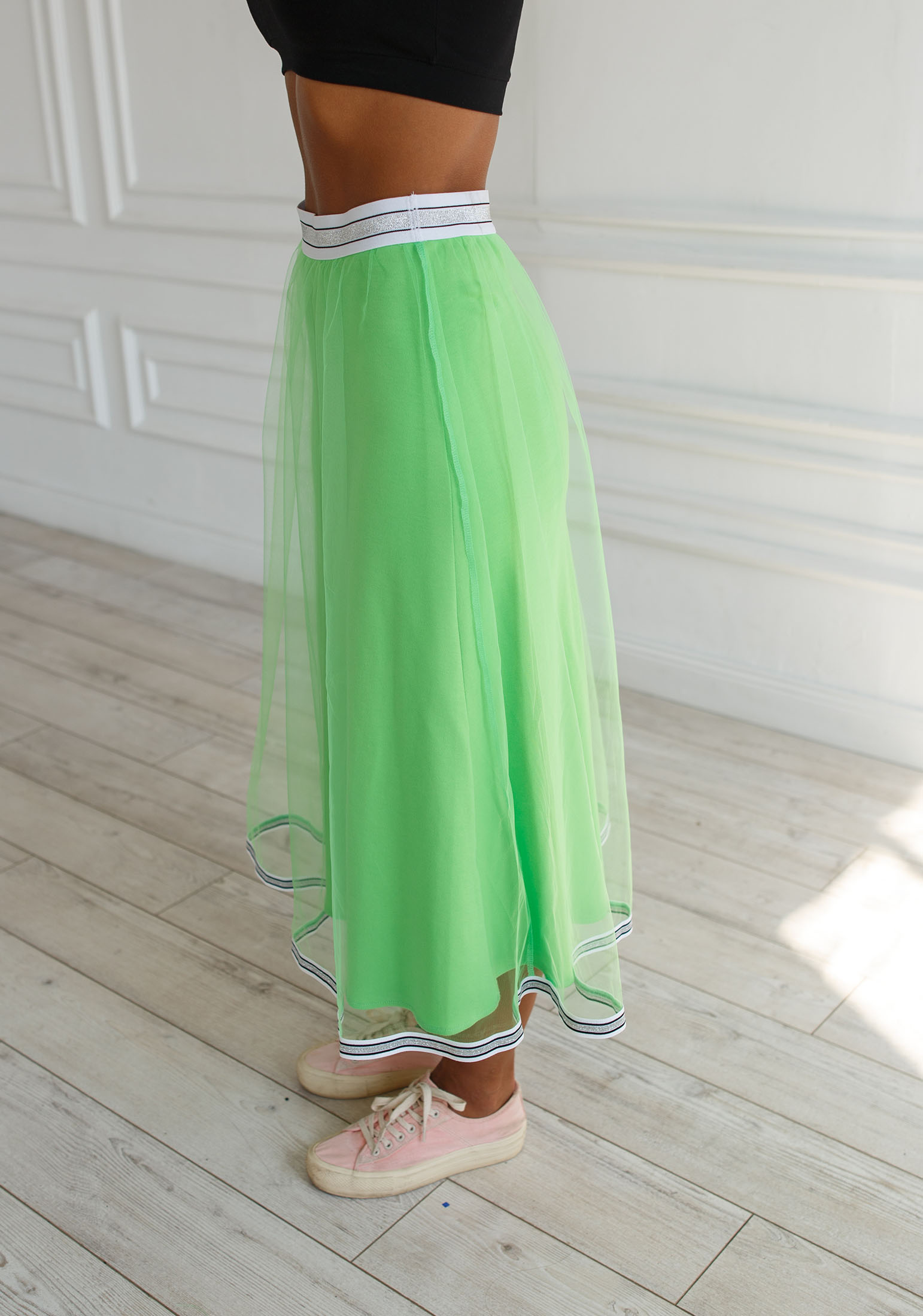 Невероятно красивая и стильная удлинённая юбка свободного кроя, выполнена из премиального турецкого трикотажа интерлок в комбинировании с мягким фатином. Это модель, которая точно должна быть в гардеробе каждой девушки, которая неравнодушна к стилю «Sport Chic». Пояс юбки изготовлен из трендовой широкой резинки с люрексом. Низ изделия декорирован лампасной тесьмой. Отличный вариант на каждый день, особенно в жаркий летний день: в офис, на прогулку, на отдых и даже дома. Идеально смотрится на любой фигуре, не сковывает движения и скрывает все недостатки. Гладить с изнанки. Стирка при t не более 30С. Деликатный отжим, отбеливание запрещено.