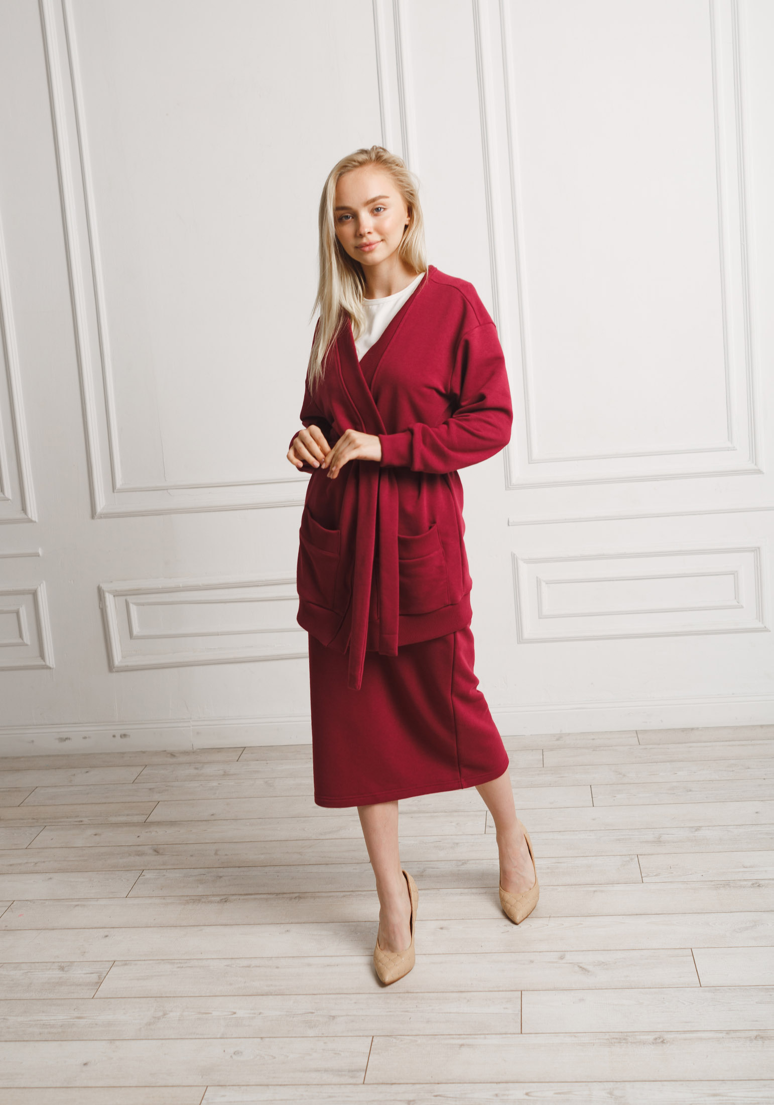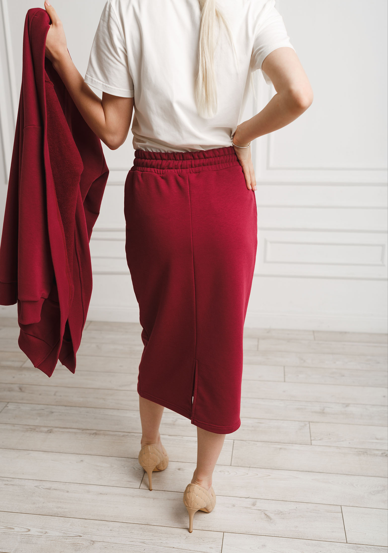 Женская юбка прямого кроя с разрезом сзади из высококачественного турецкого футера 3-ех нитки без начеса. На поясе юбки удобная и широкая резинка под шнуровку, что позволяет дополнительно регулировать изделие по объему, два вместительных боковых кармана. Длина до середины икры. Наша элегантная юбка сделает ваш силуэт классическим, деловым, нарядным. Модная трикотажная юбка - это универсальный элемент гардероба. С нашей стильной, обтягивающей прямой юбкой можно создать красивые образы на работу, в офис, на вечеринку, сочетая с совершенно любой обувью. Гладить с изнанки. Стирка при t не более 30С. Деликатный отжим, отбеливание запрещено.